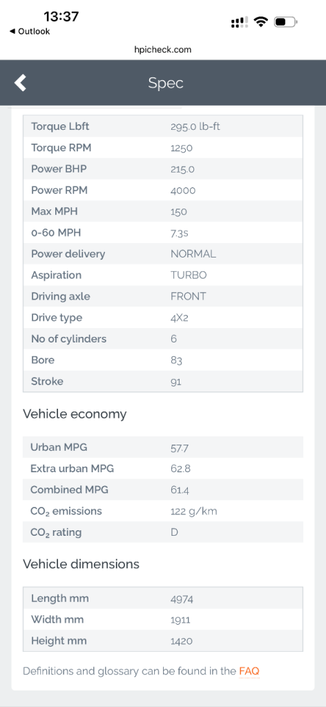 The car drives beautifully, smooth, powerful and very comfortable. It is also very reasonable on fuel for its size, averaging around 7–9 litres per 100 km depending on driving conditions.