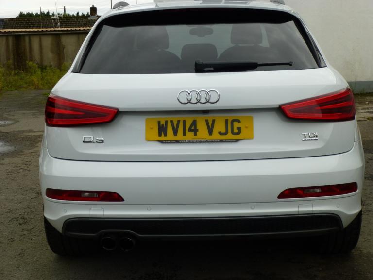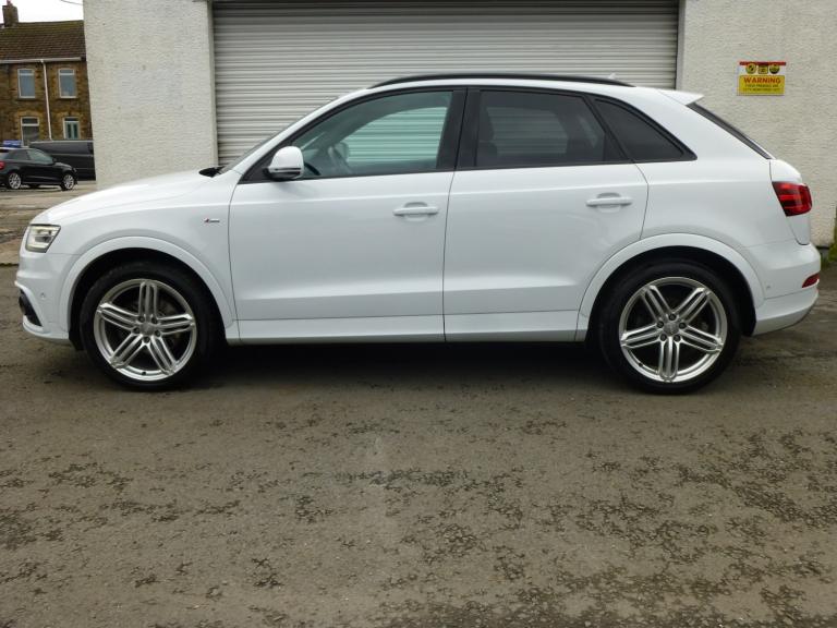audi q3 20 tdi 177 bhp quattro s-line plus edition 7 spd s-tronic autonatic transsmission euro5 suvstunning looking q3fully loaded with factory goodiessuch as 2V Power Socket in the Rear Centre Console65 inch colour Display Screen[AMI] Audi Music interface MP3/CD PlayerDAB Digital RadioFull European Map DataMobile Telephone PreparationBluetooth InterfacePreparation for SD Card-Based Navigation SystemSDHC Card Reader x2Satellite Navigation System [SD Card Based]8 x SpeakersTowbar PreparationCruise Control [dis] Drivers Information System Efficiency Program in the Drivers Information Systemfront Parking SensorRear Parking Sensors[tps] Tyre Pressure Monitoring Systemtelephone Voice Control19 inch Alloy Wheels 5-Segment spoke Design with 4 x matching pirelli pzero tyres[led] Brake Lightsfull S Line Design bodykit Diffuser Insert and Centre Front Spoiler Lip Painted in Platinum GreyBody Coloured door mirrors with Integrated LED Indicators Electrically Adjustable and HeatedElectric Windows x4chrome plated Exhaust TailpipeFull colour coded Paint FinishHeated Windscreen Washer Jets[LED] Rear IndicatorsPrivacy GlassRadiator Grille with Vertical gloss black Barsblack Roof Rails S Line Badges on Front WingsS Line Body StylingSunband for Windscreen window surrounds and beltline in gloss blackFront Fog LightsAutomatic headlight Activation with Automatic AdjustmentHeadlights with Automatic Dynamic Range Control and Bi-Xenon Plus with coming and leaving home functionHeadlight power Washers[LED] Daytime Running Lights7-Digit Postcode RecognitionAuto-Dimming Rear-View MirrorAutomatic Wipers with Rain Sensorblack Cloth HeadliningDoor Sill Trims with S Line LogoDual-Zone Electronic Climate Control and air conditioningElectrically Adjustable 4-Way Lumbar SupportFront and Rear floor mats in VelourFolding Storage Compartment in Front Centre Armrest adjustable Front Centre ArmrestPerforated Leather gear knobVentilated glove boxMatt Brushed Aluminium inlaysRear air vents in rear centre consoleReversible Luggage Compartment Floorfrpnt Drivers Manual Height AdjustmentFront Sports S Line Embossedfull leather upholsterySplit-Folding Rear leather SeatsStainless Steel Loading Sill Protector3-Spoke Leather Trimmed Sports Steering Wheel with Gear-Shift PaddlesSteering Wheel Height and Reach AdjustableMulti-function steering wheelTP Memo Automatically Saves Traffic news Dynamic Suspension[EDL] Electronic Differential LockElectromechanical Power Steering[ABS] mAnti-Lock Braking System[ASR] Anti Slip RegulationThatcham CategoryAudi Parking System Plus[EBD] Electronic Brakeforce Distribution[ESP] Electronic Stability Programme Front Passenger Airbag Deactivation SwitchISOFIX Child Seat Mounting for Front PassengerISOFIX Child Seat Preparation for Rear Seats with Top TetherRemote Central Locking with 2 Fold Away Keyspanoramic glass sunroof7 spd s-tronic silky smooth automatic transmissionlooks and drives superbnot a black edition but the next best thing106000 with service historycurrent mot till june 2026 fully colour coded in audi's nice and bright [s9r] glacier white metallichpi report available on all vehicles