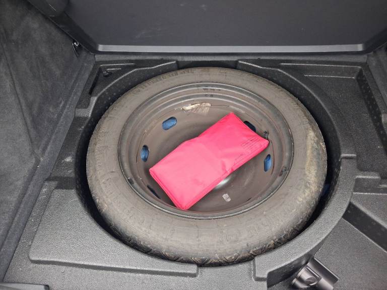 Space saver spare wheel with jack and tools