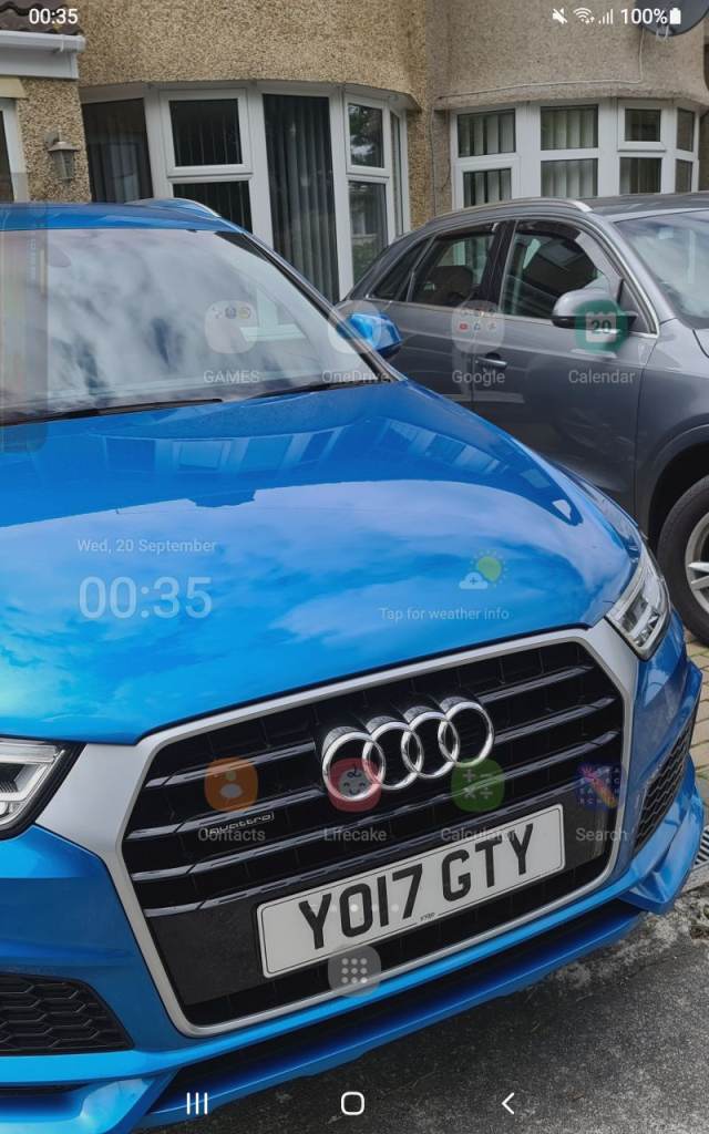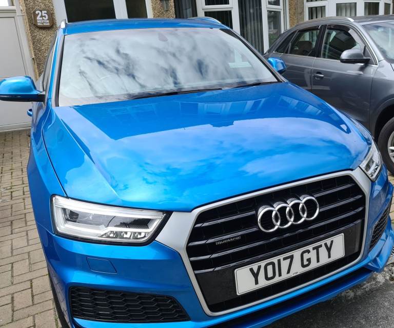 Beautiful blue audi q3 automatic 2ltr 184bhp in excellent condition private plate taken off so waiting for the log book to come car comes with electric boot. car play.alloy wheels.full electric windows.auto lights.auto wipers.air con.cloth seats.spare wheel.18inch alloys.reversing camera.full service history ..recent service done