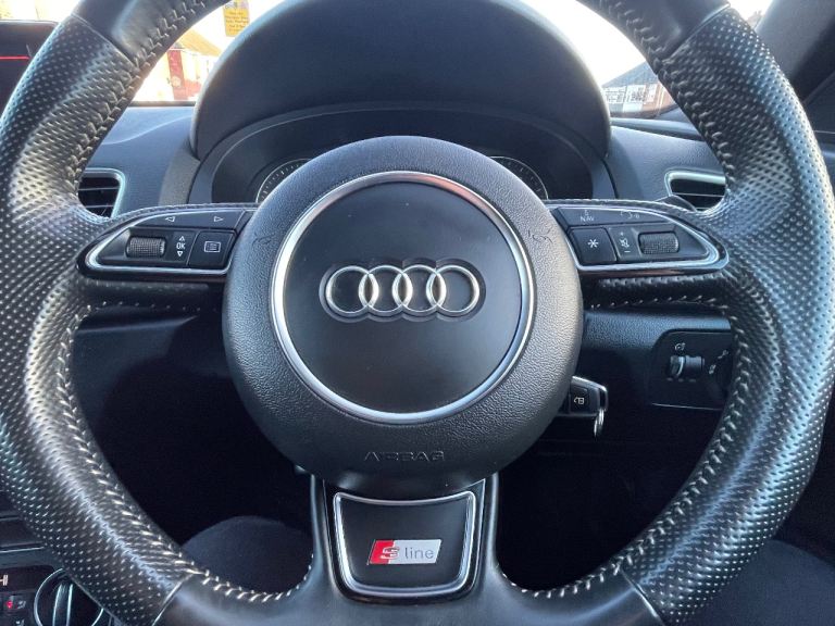 Safety and driving functions include Audi Drive Select, dynamic suspension, ASR, EBD, EDL, ESP, Secondary Collision Brake Assist, ISOFIX front and rear with top tether, multiple airbags, TP Memo, tyre pressure monitoring, alarm, anti-theft wheel bolts and remote central locking. This Q3 S line delivers a strong specification with notable styling upgrades, practical convenience features and the sought-after 1.4 TFSI CoD powertrain.