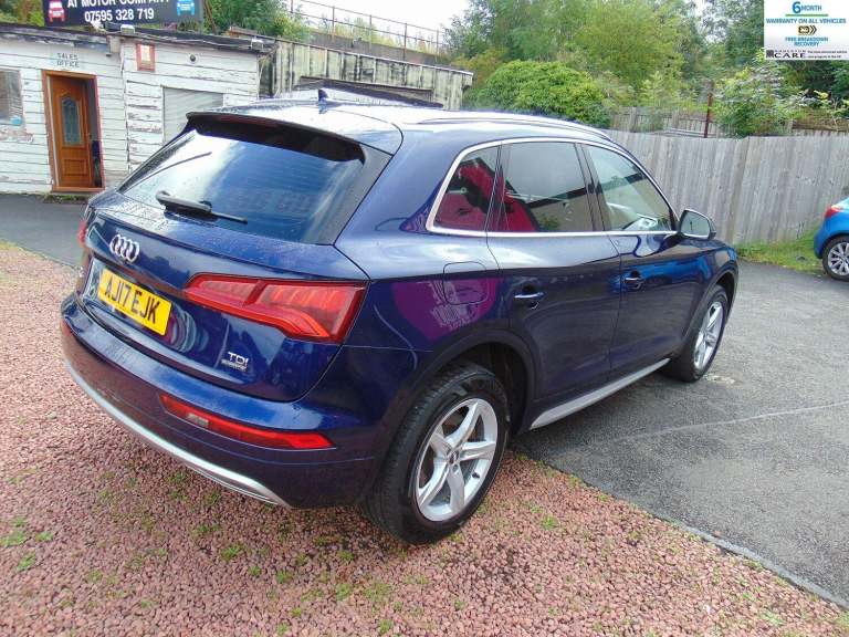 A1 Motor Company are excited to offer this 2017 AUDI Q5 a reliable and affordable option for those looking for a quality used vehicleThis stunning example has had only 1 owner from new and its condition reflects the care and attention it has received The blue colour looks great on the road and is sure to turn heads With 8 service stamps you can trust that the vehicle has been well-maintained and is ready for its new ownerThe 1968cc Diesel engine provides ample power and efficiency making this Q5 an excellent choice for both daily commutes and longer trips The vehicle has a valid MOT until July 2026 giving you peace of mind for the next few yearsWe are confident that the first to see and drive this AUDI Q5 will buy so don't miss out on this fantastic opportunity Finance is available to help make your purchase more manageable and we also offer a free 6-month warranty and 6-month breakdown cover for added reassurancePart exchanges are welcome so if you're looking to upgrade or change your current vehicle we'd be happy to discuss the details with you Please click on our website to view all the cars currently in stock but we think you'll find that this 1 owner from new AUDI Q5 in the best colour is the perfect choice for you
