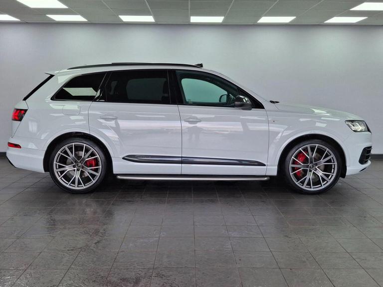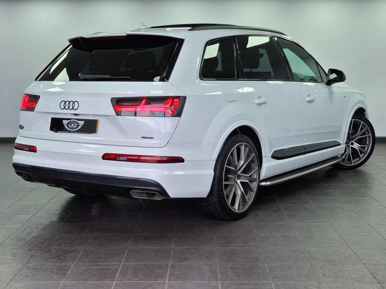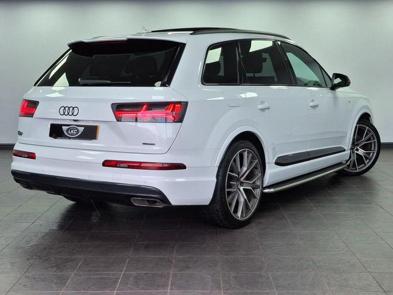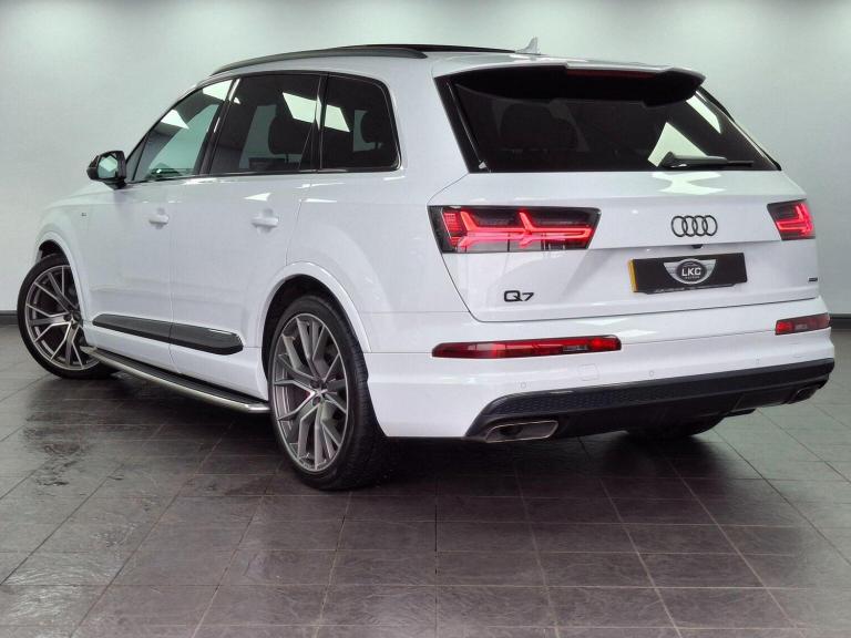 Step into a world where power meets precision and presence becomes effortless, the Audi Q7 V6 Black Edition isn't just an SUVit's a statement. Beneath its sculpted bonnet lies a refined V6 engine delivering smooth, confident performance. Whether you're gliding through city streets or conquering long motorway stretches, the Q7 responds with strength, stability, and unmistakable Audi engineering.***Black Edition***Panoramic Roof***22"" Alloys***Side Steps***12 Months MOT***6 Months Warranty***This 2018 Audi Q7 TDI V6 Black Edition presents an exceptional opportunity with its remarkably low mileage of just 55,004 miles for its age. This impressive estate car, finished in the striking Black Edition trim, boasts a powerful 3.0 litre diesel engine paired with a smooth four wheel drive system, ensuring confident performance in all conditions. With seating for seven, it offers ample space for families and friends, while its Euro 6 emission class reflects its modern efficiency. The Q7 also offers a substantial towing weight of 3500 kg, making it a versatile choice for those needing to tow. Further enhancing the driving experience are a host of desirable features. Navigate with ease thanks to the rear view camera and enjoy seamless connectivity with the Audi Smartphone Interface, compatible with both Android Auto and Apple CarPlay. Comfort is assured with heated front seats, and the panoramic glass sunroof floods the cabin with natural light. Automatic headlights and rain sensors provide added convenience, while its position in a low insurance group makes it an economical choice. This Q7 also delivers exhilarating performance, accelerating from 0 to 62 miles per hour in a swift 6.5 seconds, demonstrating its dynamic capabilities compared to other vehicles in its class.