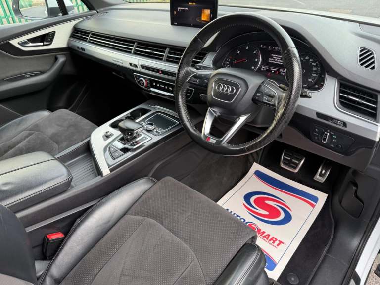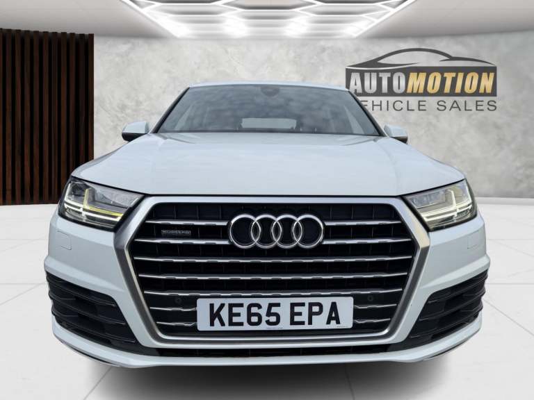 2016 Audi Q7 S Line Quattro 30 TDI V6 Automatic 4 Wheel Drive Finished in Stunning Audi Arctic White with Full Premium Black S Line Embossed Leather Interior This rare Q7 really needs to be seen to be appreciated it looks and drives great has covered 84000 miles and will be happily supplied by us Fully Serviced up to date and with a brand new 12 months MOT upon sale and is also ULEZ compliantThe 30-litre TDI V6 diesel engine offers a good balance of power and efficiency delivering strong performance while maintaining decent fuel economy It comes equipped with Audi's MMI infotainment system featuring a responsive touchscreen smartphone integration and advanced driver assistance featuresThe Q7 has a roomy interior with the option for a third row of seats making it a practical choice for families needing extra spaceAudi's Quattro all-wheel-drive system enhances traction and stability making the Q7 capable in various driving conditions This Q7 is equipped with numerous safety features including adaptive cruise control lane departure warning and automatic emergency braking contributing to its high safety ratingsViewing and test drive is highly recommended on this lovely Quattro Q7 which we will also supply with 3 months warranty at the point of sale 19495 Part Exchange is welcome and Finance is available at great rates Here at Automotion Vehicle Sales all our vehicles undergo a rigorous Multipoint Inspection and are Valeted and Detailed to a high standard prior to sale