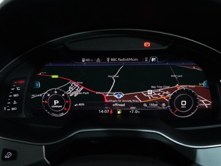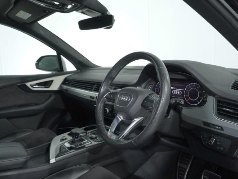 AUDI Q7 50 TDI Quattro S Line 5dr TiptronicMythos Black Metallic, Anthracite Leather and Cloth, Front Heated Seats, Front Electric Seats, Panoramic Glass Sunroof, Bose Surround Sound Audio System, MMI Navigation, Audi Virtual Cockpit, Third-Row Seating, Privacy Glass
