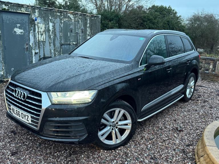HERE WE ARE INCREDIBLY DELIGHTED TO OFFER YOU OUR 2016 ( 66 PLATE ) AUDI Q7 QUATTRO S-LINE 3.0 DIESEL TDI 218 8 SPEED AUTOMATIC 7 SEATER - FULLY HPI CLEAR - GENUINE // WARRANTED LOW MILEAGE OF JUST 106,585 MILES - ONLY 1 FORMER KEEPER FROM SHOW ROOM ( WOW !! ) - FULL LOGBOOK + V5 PRESENT - PART SERVICE HISTORY INCLUDED - TIMING CHAIN REPLACED AT 102,000 MILES ( WOW WHAT A HUGE CONVENIENCE FOR THE NEXT OWNER !! ) - 2 ORIGINAL AUDI KEYS PROVIDED ( HUGE PEACE OF MIND !! ) - LONG MOT WHICH IS VALID UNTIL SEPTEMBER 2026 !! ( PASSED WITH NO ADVISORIES// HUGE CONVENIENCE FOR THE NEXT OWNER !! ) - HUGE SPECIFICATION WHICH INCLUDES OF: PARKING SENSORS - HALF LEATHER TRIM INTERIOR - AUTOMATIC HEADLIGHTS - RAIN SENSOR - REAR CLIMATE CONTROL - AUDI PRE SENSE - REAR ELECTRIC SEATS - BLUETOOTH CONNECTION - 7 SEATS - MULTIFUNCTIONAL STEERING WHEEL - HEATED SEATS - AUTOMATIC WIPERS - CRUISE CONTROL - NAVIGATION SYSTEM - STOP / START SYSTEM - ELECTRIC WINDOWS + MIRRORS - ELECTRIC TAIL GATE - PLUS MUCH MORE *** FULL WALK AROUND VIDEOS AVAILABLE UPON REQUEST *** SAME DAY NATIONWIDE HOME DELIVERY AVAILABLE *** PLEASE CALL TO ARRANGE A VIEWING APPOINTMENT ***