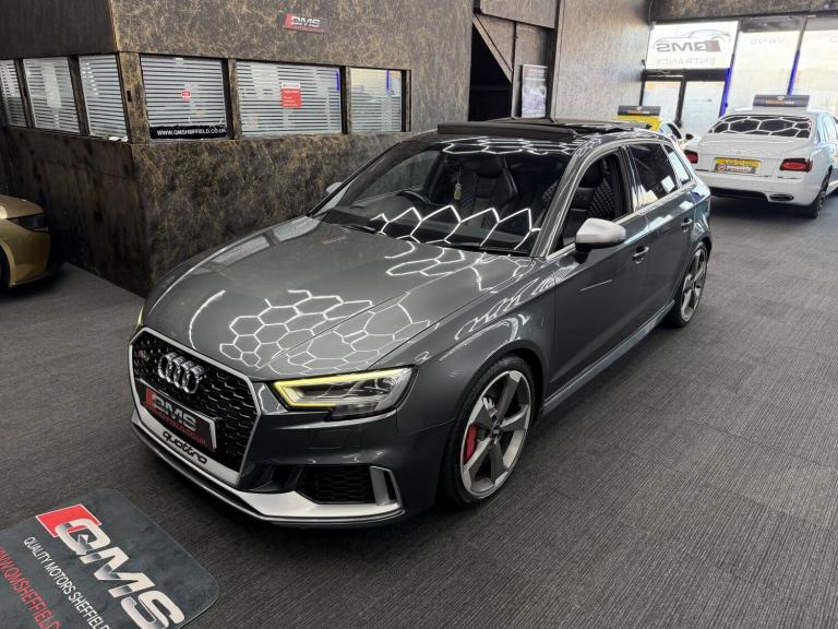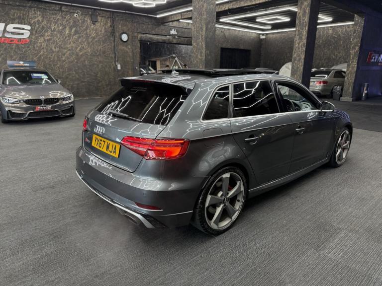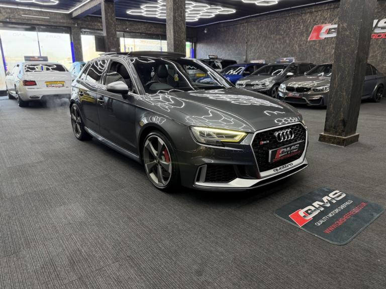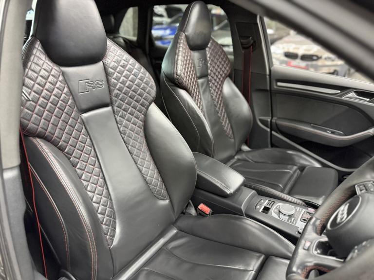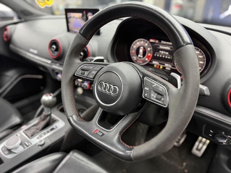This 2017 Audi RS3 TFSI boasts exceptionally low mileage for its age, having covered just 42,996 miles, and benefits from an MOT valid until November 2026. This impressive performance variant features a potent 2.5 litre petrol engine paired with a four wheel drive drivetrain, ensuring dynamic handling and exhilarating acceleration from 0-62mph in a mere 4.1 seconds. Its Euro 6 emission class reflects modern efficiency, while practical features include a generous boot space, an auto dimming rear view mirror with light and rain sensors, and the convenience of LED headlights with dynamic rear indicators. Further enhancing your driving experience, this RS3 is equipped with Audi Parking System Plus, offering front and rear parking sensors for effortless manoeuvring. Inside, you'll find dual zone electronic climate control to keep all occupants comfortable, and a Bluetooth interface for seamless connectivity on the go. These notable features, combined with its outstanding acceleration and low mileage, position this Audi RS3 as a superior choice for those seeking a blend of performance, technology, and practicality.