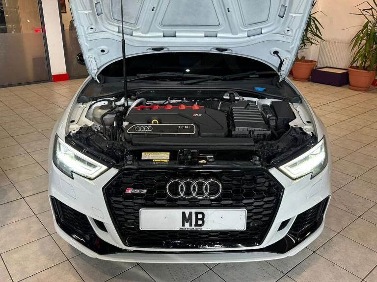 2017 Audi RS3 2.5 TFSI Quattro finished in White, covered 108,768 miles with 6 previous owners. Powered by the outstanding 2.5-litre five-cylinder TFSI petrol engine producing impressive performance and the unmistakable RS exhaust note, paired with a smooth S Tronic automatic gearbox and Audi's renowned Quattro all-wheel drive system for exceptional grip and handling in all conditions. This vehicle is recorded as CAT S (previous structural damage) and has been professionally repaired to a good standard; it drives straight, pulls strongly through the gears and performs exactly as an RS3 should. The car offers a great balance of everyday comfort and serious performance, making it ideal as a daily driver or weekend performance car. Bodywork presents well in White, interior is clean and tidy for the mileage, and the vehicle has been maintained in line with its age and use. A fantastic opportunity to own a highly sought-after RS3 at a significantly lower price than a non-category example. Serious enquiries welcome.