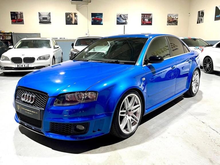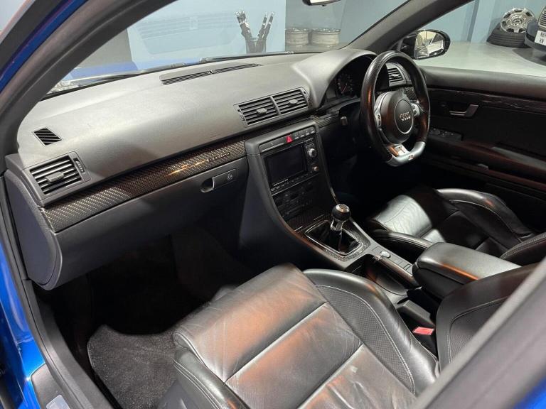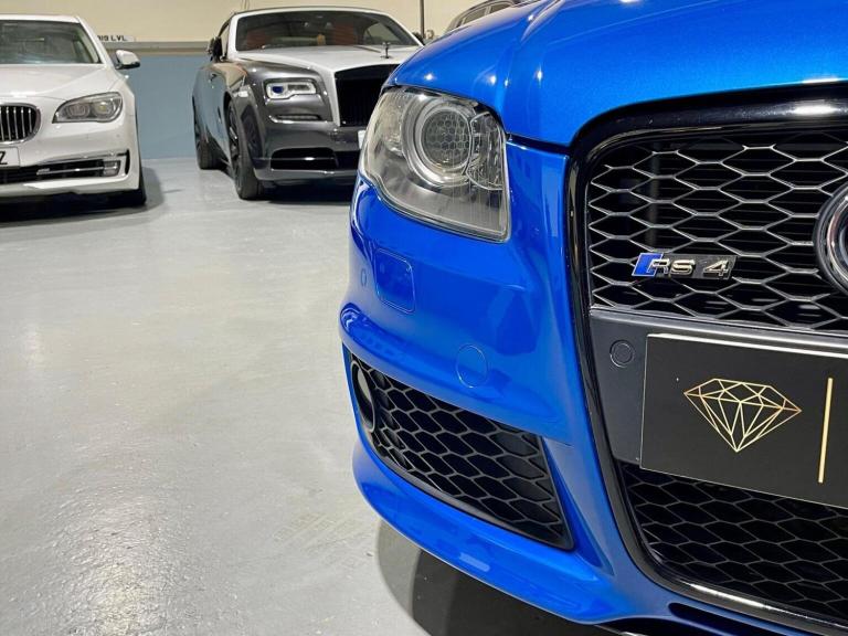 *GET BETTER DEALS - CONTACT US DIRECTLY FOR FINANCE OPTIONS* *EXCEPTIONALLY RARE EXAMPLE* - 99,691 Miles From New With Excellent Service History. FRESH MOT ON SALE. Finished in Nogaro Blue with Contrasting Very Rare Full Black Leather RECARO WING-BACK Seat Configuration. PRIVATE RS4 REG COMES WITH THE CAR. The Vehicle Comes With IT'S Original Factory Suede Grey Wallet With RS LOGO, Flat Bottom Sports MF Steering Wheel, Full Carbon Interior Pack Including Carbon Gear Knob. Genuine RS4 Alloys 19 inch UNMARKED, Bose Sound System, Gold Brake Callipers, Heated Seats, Sports Racing Mode, Black Grill, Tinted Glass, Blue Badge Option Pack, SCORPION Stainless Steel Exhaust, Bilstein Suspension, DRL Pack, Automatic Air Re-Circulation, Front Centre Armrest with Storage Compartment, GSM Mobile Preparation in Front Centre Armrest, Audi Exclusive Colour Range, Audi Exclusive RS4 Black Leather Pack, DVD-Based Satellite Navigation Plus, Floor Mats and Carpets from Audi Exclusive. ABSOLUTELY STUNNING EXAMPLE, BEST COLOUR TO INCREASE IN VALUE. Peace of Mind Guaranteed