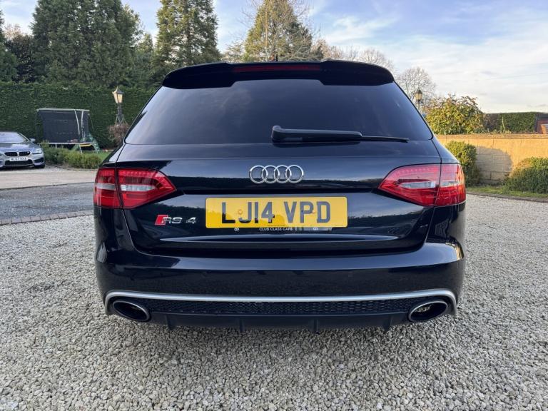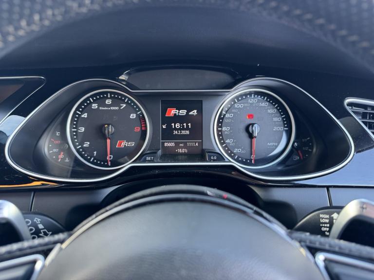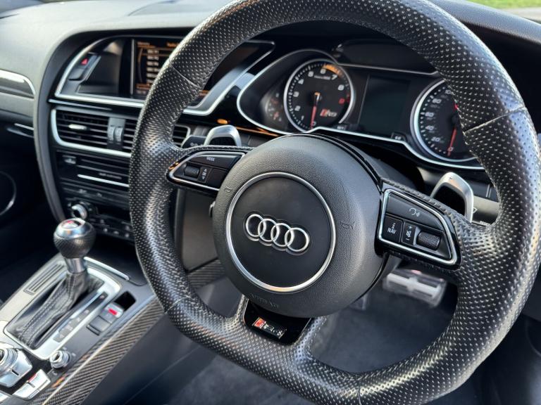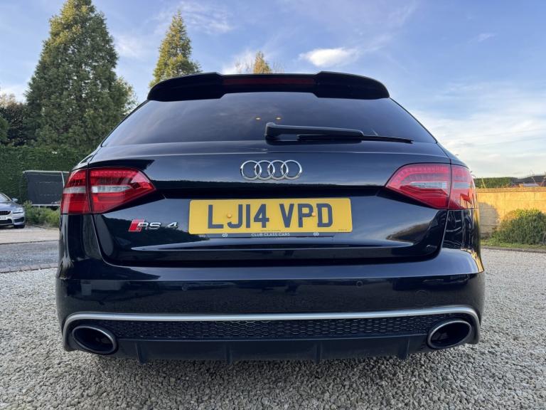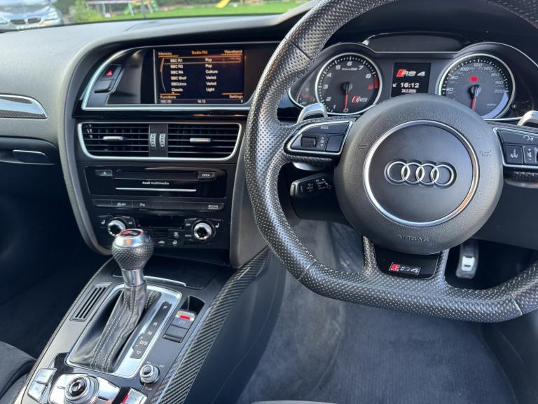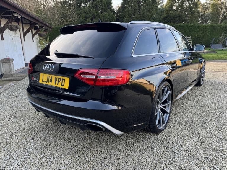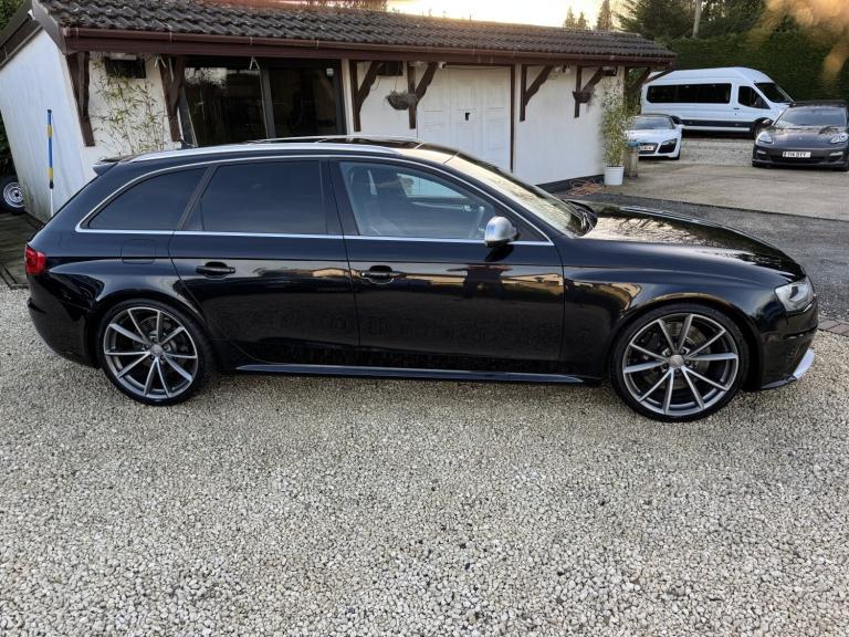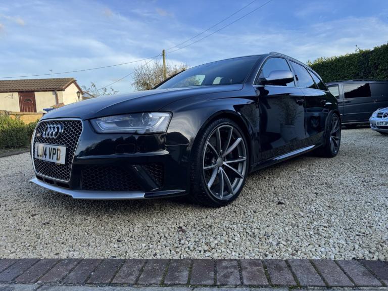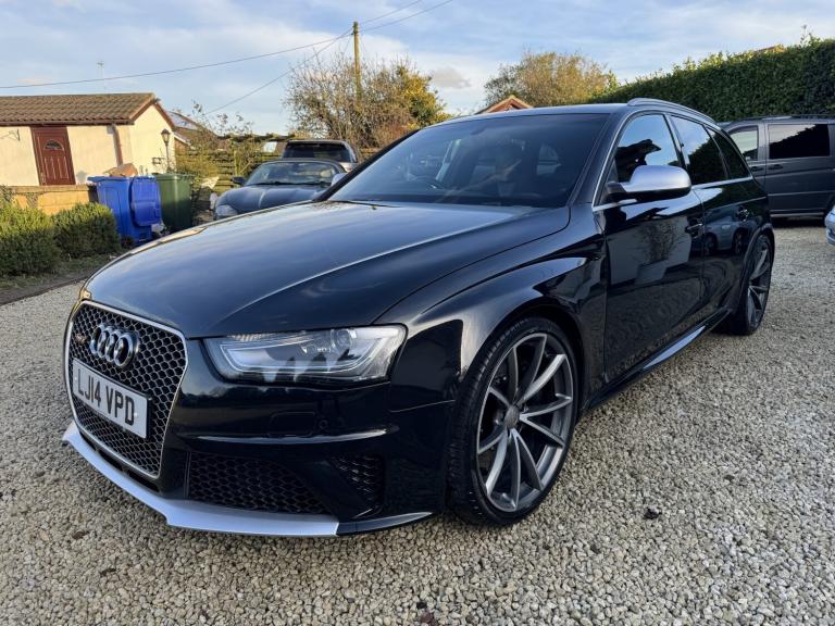 2014 Audi RS4 Avant (B8) Black 85,000 Miles Full Audi Main Dealer History A superb example of the Audi RS4 Avant, finished in black with 85,000 miles from new and supported by a full Audi main dealer service history. A well cared for car that perfectly balances everyday practicality with serious performance. Vehicle Details Year: 2014 Mileage: 85,000 miles Colour: Black Transmission: 7-Speed S Tronic Automatic Engine: 4.2L V8 FSI Drive: Quattro All-Wheel Drive Service History: Full Audi main dealer history Performance The RS4's naturally aspirated 4.2L V8 produces 444 BHP and delivers an incredible sound and response that modern turbocharged engines struggle to match. Combined with Audi's legendary quattro system and sports differential, the car offers outstanding grip and confidence in all conditions. 060 mph approx. 4.7 seconds Audi Drive Select driving modes RS sports suspension Sports differential Specification . Panoramic Roof . Ghost Immobiliser . Bang & Olufsen Sound System Carbon fibre interior pack RS Super Sports leather Alcantara seats Heated front seats MMI Navigation Plus with satellite navigation Bluetooth phone and media connectivity Front and rear parking sensors Electric tailgate Flat-bottom multifunction RS steering wheel Dual-zone climate control Cruise control Xenon LED headlights Audi Drive Select Large RS braking system 20 alloy wheels unmarked condition Condition A very clean and well-maintained example inside and out. The alloy wheels are unmarked and the car drives exactly as it should with smooth power delivery and a tight, refined feel. Why the RS4 Avant One of the last naturally aspirated RS models, combining a high-revving V8 with everyday usability, a large boot and superb build quality. Viewings welcome Get in touch for more information, photos or to arrange a viewing.