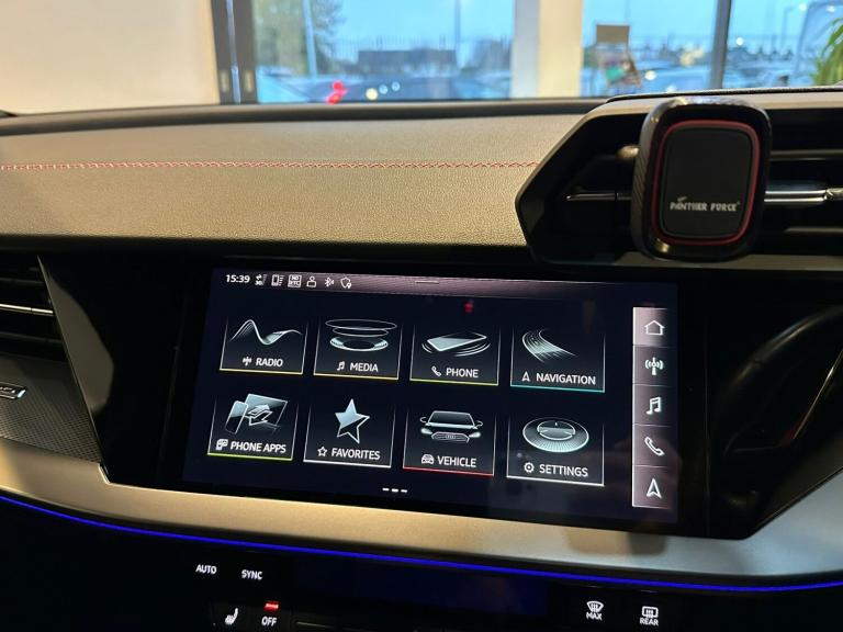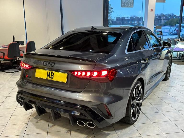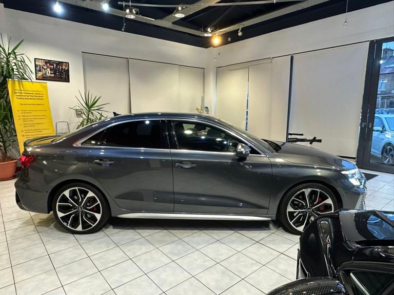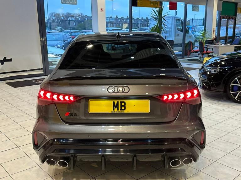 The Audi S3 comes packed with premium features, including a powerful 2.0-litre TFSI petrol engine with quattro all-wheel drive and a smooth 7-speed S tronic automatic gearbox, delivering sharp performance and confident handling. Its sporty exterior is highlighted by a bold Single frame grille, quad exhausts and striking LED headlights with selectable light signatures. Inside, the S3 offers high-quality sports seats, a flat-bottom steering wheel, ambient lighting and a refined cabin finished in premium materials. Technology is a strong point too, with a 10.1-inch MMI touchscreen, Virtual Cockpit digital display, Apple CarPlay and Android Auto, plus optional upgrades such as a Sonos 3D sound system and advanced driver assists including adaptive cruise control, lane-keeping assist and park assist. Combining performance, comfort and modern tech, the S3 delivers a well-rounded premium driving experience. The specification and technical details in this advert are pulled through from a third-party source. MB Motor Group therefore cannot guarantee or warrant the accuracy of this information. We therefore kindly ask customers to check the specification of their chosen car to ensure it meets all of their requirements prior to purchase.