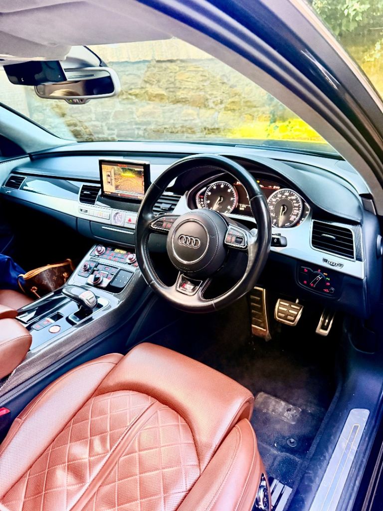 2015 Audi s8 facelift in a rare combination of meythos black with nougat brown leather and suede interior with extended carbon trim
