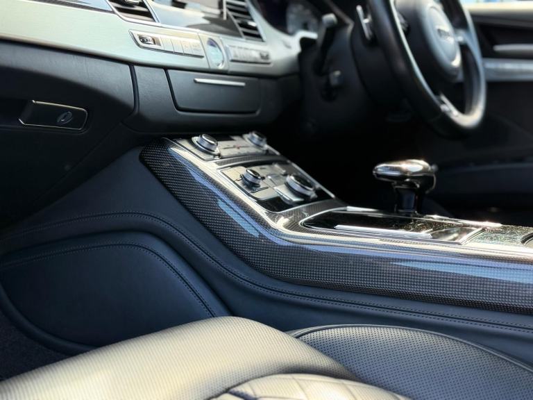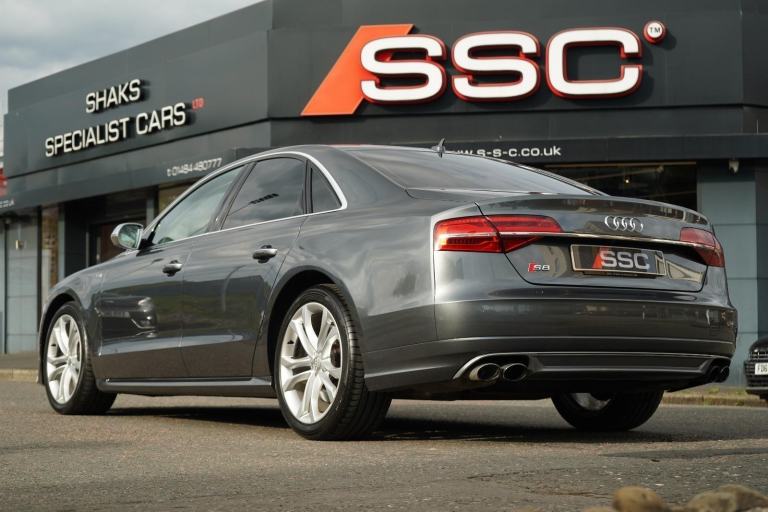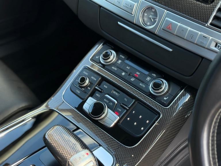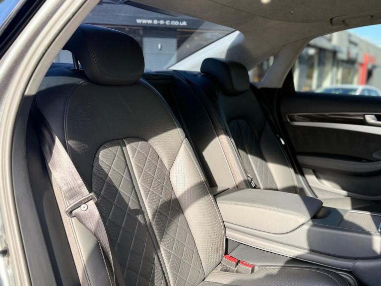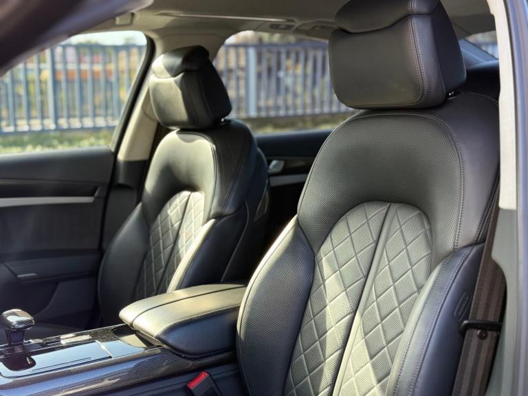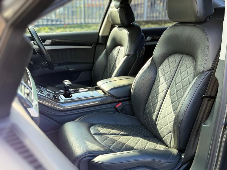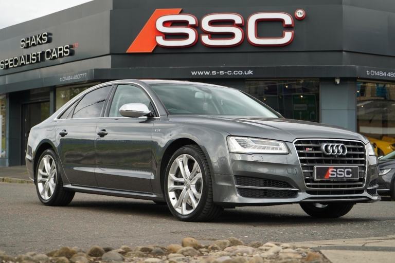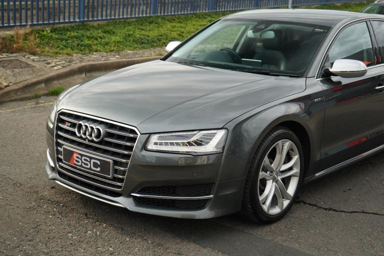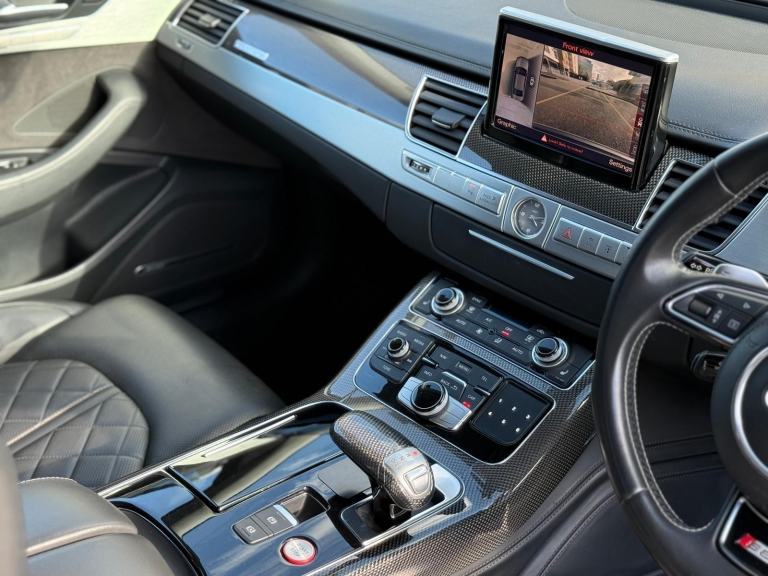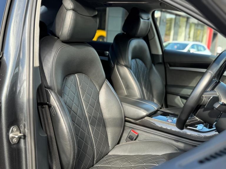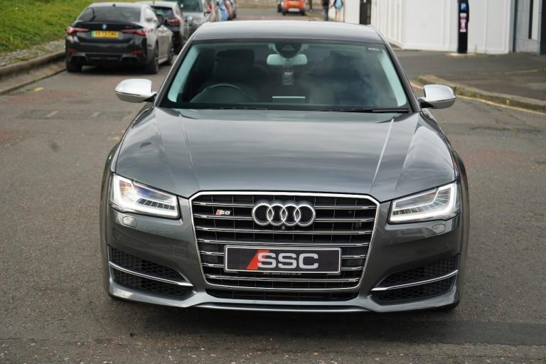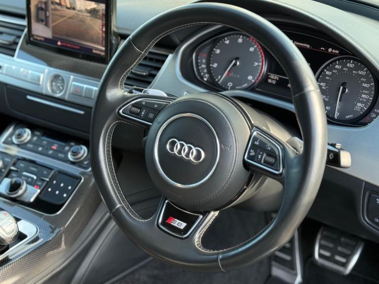 Stunning S8 V8 TFSI Finished In Daytona Grey Pearl With Black Valcona Leather. Fantastic Spec Inc: Adaptive Air Suspension, Carbon Inlays, Advanced Key, Audi Drive Select, Audi Parking System Advanced, Surround Cameras, Audi Matrix LED Headlights, BOSE Surround Sound System, DAB Digital Radio, Hands-Free Boot Opening System, 20" Alloys, Double Glazing, Dynamic Steering, Power Operated Tailgate, LED Interior Ambient Lighting Pack, Electric and Heated Front Seats With Memory. This S8 Comes With Full Service History.