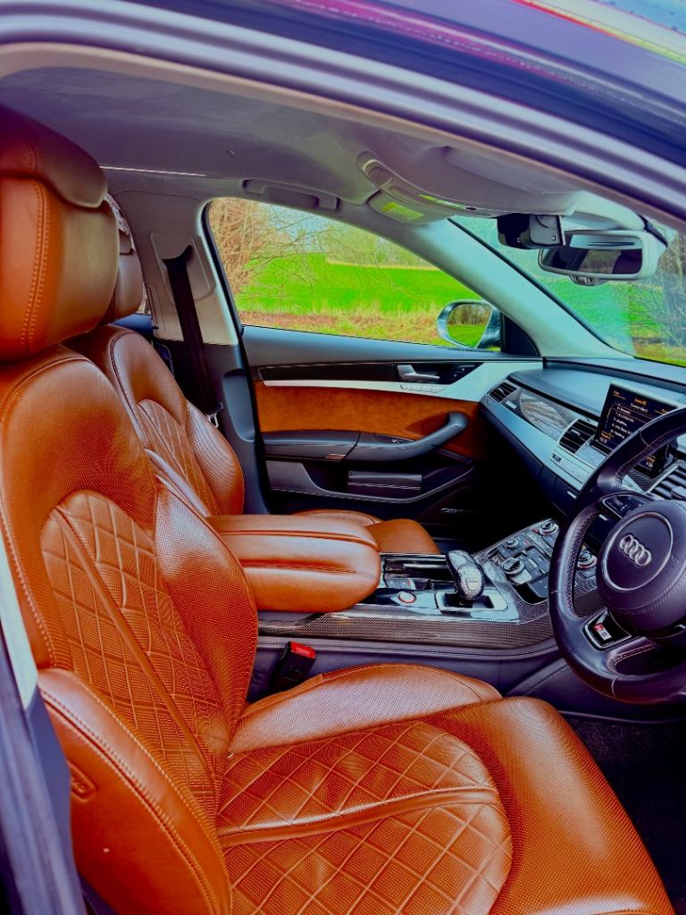 2015 Audi s8 facelift in a rare combination of meythos black with nougat brown leather and suede interior with extended carbon trim