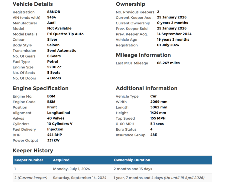 The V10 S8 is now widely recognised as a modern classic, combining understated executive styling with genuine supercar derived performance. Examples with this mileage, condition, and provenance are becoming increasingly hard to find.