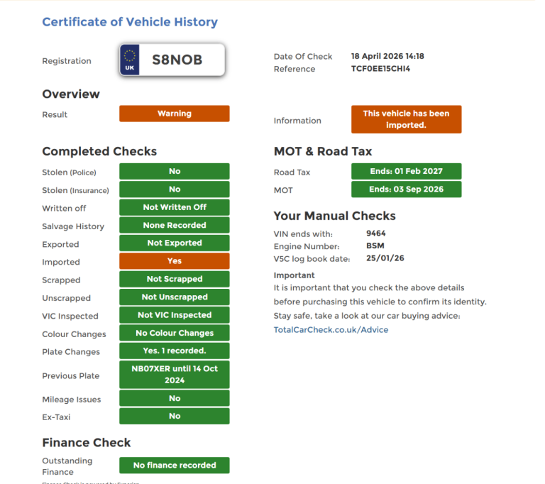Our vehicle history check is provided for guidance only. Please check all the details with the seller before purchasing