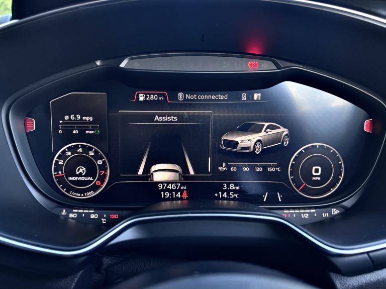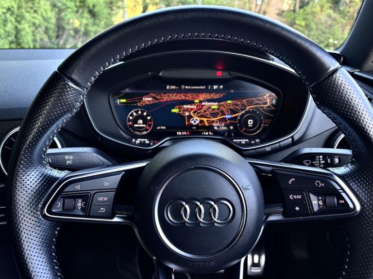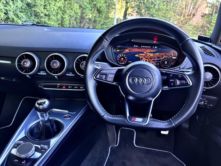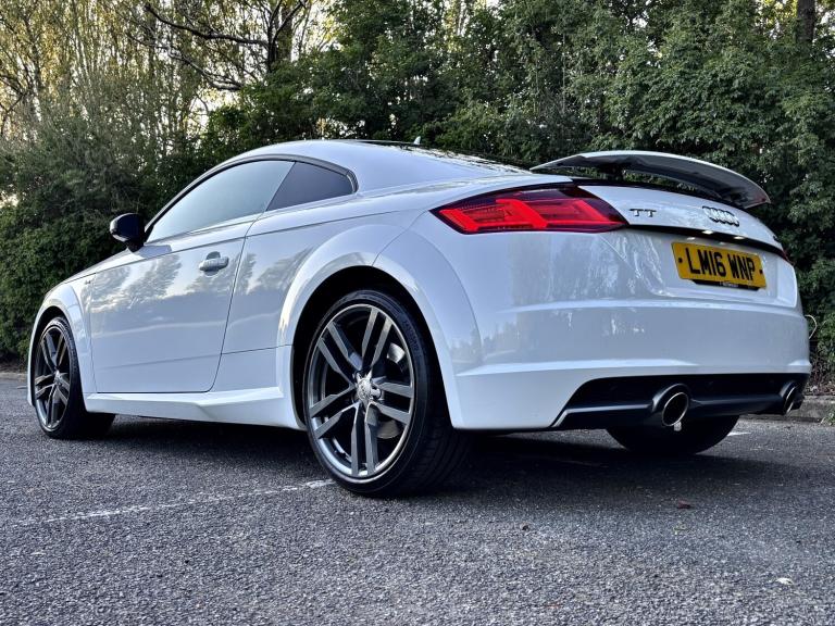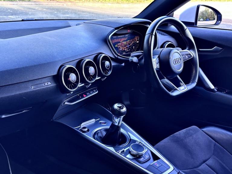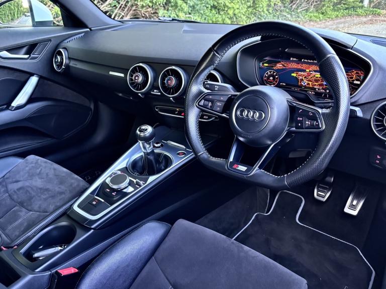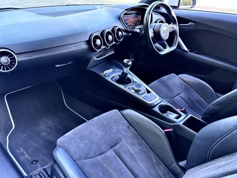 This Audi TT 2.0 TFSI S Line has been exceptionally well cared for and truly cherished by its previous owner. Presented in excellent condition throughout, it offers both style and performance in equal measure. The vehicle benefits from professionally powder coated alloy wheels, complemented by a full set of matching Continental tyres. With 97,000 miles and a comprehensive full service history, it has been maintained to a high standard. Driving this TT is a real experience, enhanced by a sporty exhaust note that perfectly matches its dynamic performance. Key features include: * Virtual Cockpit display * DAB digital radio * Bluetooth phone connectivity * Reverse parking sensors * Rear electric spoiler * S Line body styling * Part leather heated sport seats * Two keys supplied Part exchange is welcome, and flexible finance options are available. Contact Aidan today to arrange your test drive and experience this impressive Audi TT for yourself.