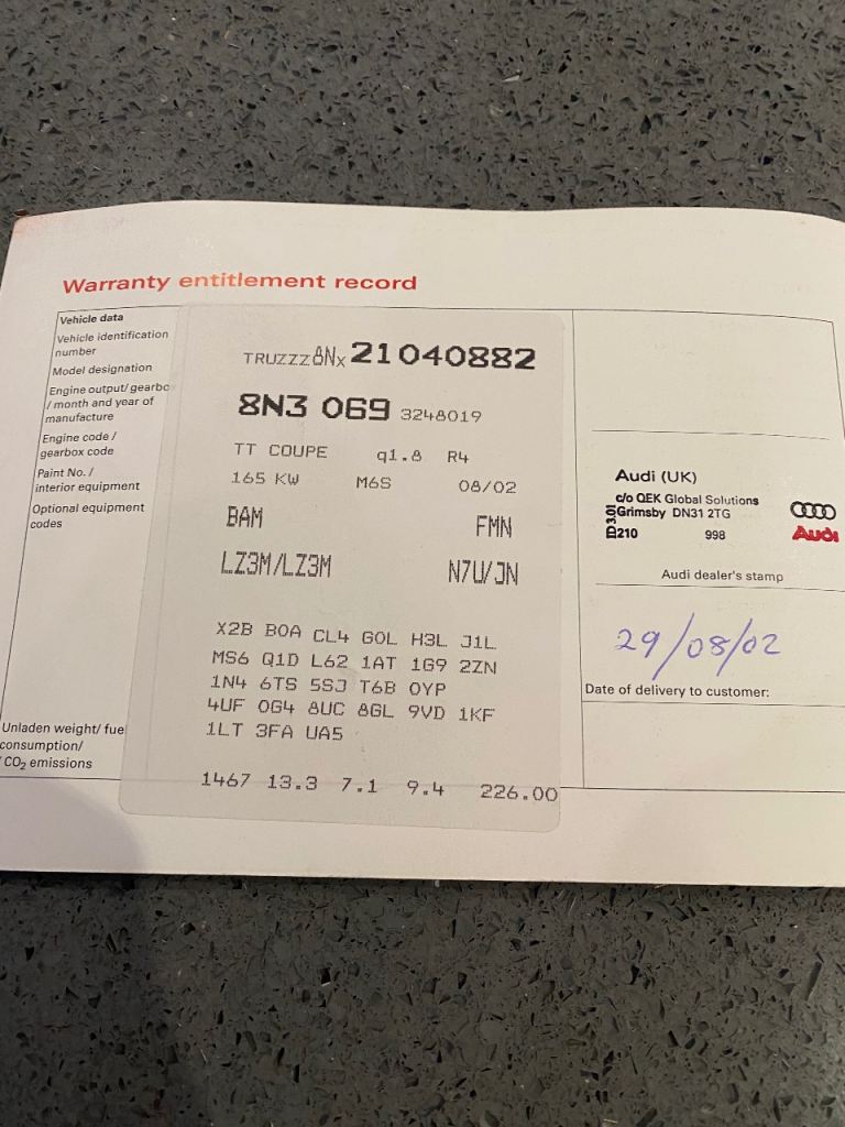 Audi, TT, Coupe, 2002, Manual, 1781 (cc), 3 doors