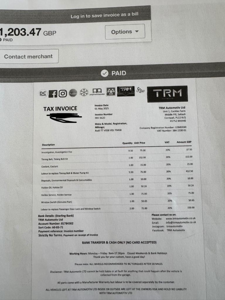 Beautiful example Audi TTS with only 72k miles (slightly rise due to use). Meticulously maintained and drives perfect. Some of the recent work done and stand out features…