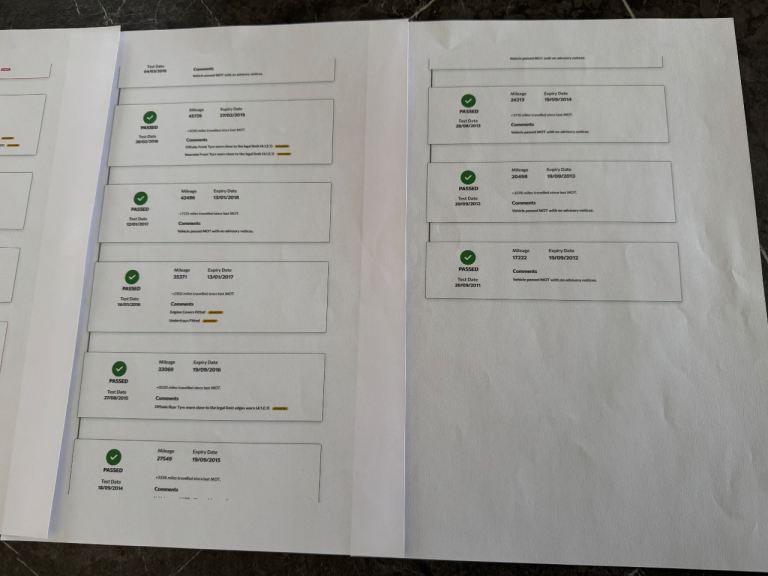 -16 MOT passes and only 2 fails with no major problems (see pictures).