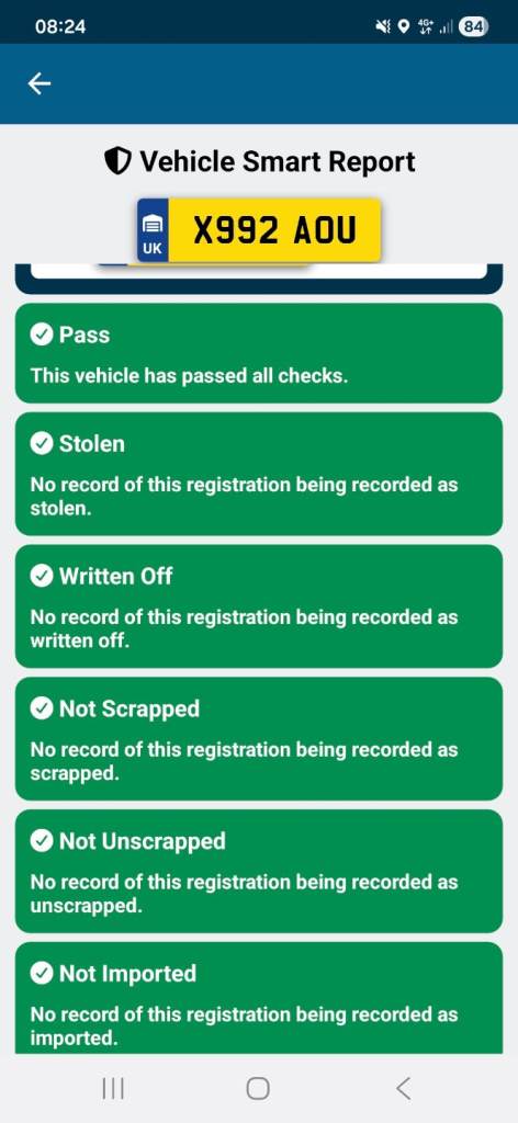 This vehicle has not been reported stolen, scrapped, exported or flagged as unroadworthy.