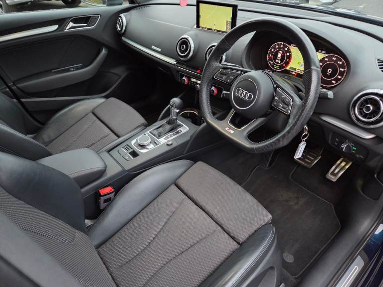 Extremely clean example of a very well looked after Audi A3 S-Line Hatchback Automatic finished in Blue with with Half Leather Seats. Full Audi Service history up until this year where I have had a full service carried out at a local garage by an Ex VAG Technician along with a Full checkover. Features Privacy Glass and Digital Cockpit along with sweeping lights. Superb Sound system, Wireless charging, Audi pop up Sat Nav and reversing Parking sensors. MOT up until 04/07/2026.