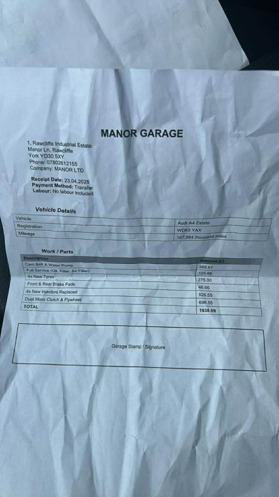 Stacks of paper work including belts and clutch kit also had a new turbo and 4 injectors interior is in great condition pulls like a train great on fuel sat nav dab Bluetooth cruise control air con auto lights and wipers full leather heated seats and door mirrors