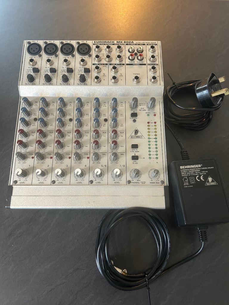 Behringer Eurorack Mx802a mixer plus Kam kwm11 dual microphone kit.
