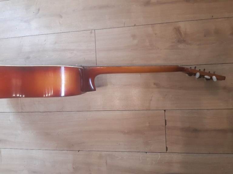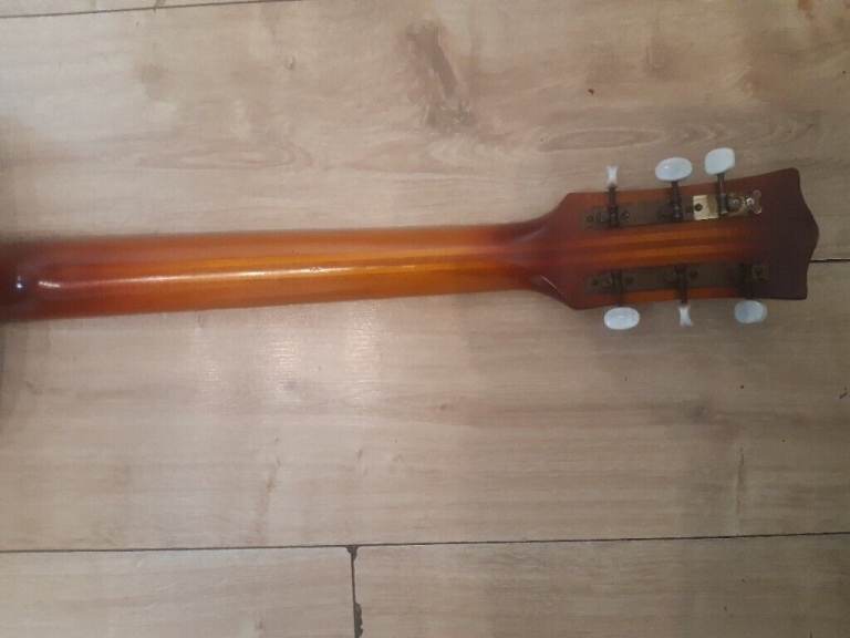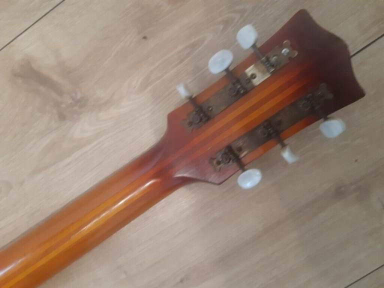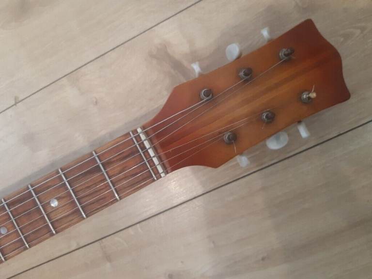 Very clean please note one machine head has been replaced cut in with a matching one see photo. A lot of work went into restoring this guitar and therefor must be reflected in the price. The neck is a handful chunky which suggests would suit someone with big hands. The body is also larger then normal it's a massive guitar. There is a slight string buzz on the D string at the 12th fret which I'll look into perhaps try and rectify.
