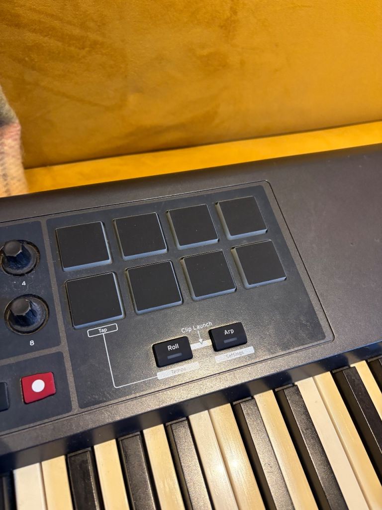 Novation Impulse 61 key midi controller. With drum pads and mod wheel.
