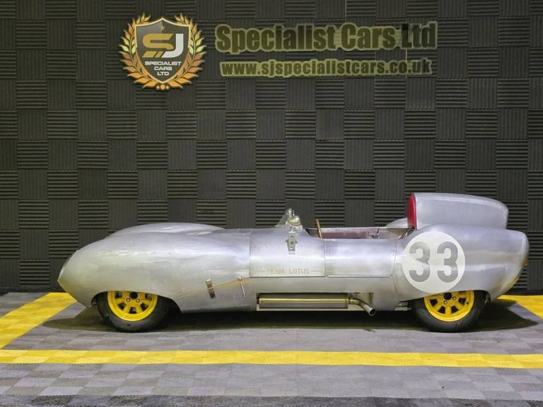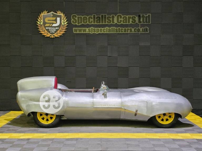 Hand built replica of Steve McQueen Lotus Eleven no 33,Built using Lotus Eleven replica Chassis Hand fabricated unpainted Aluminium body built using English wheel etc, with hand painted roundels and lettering giving an entirely authentic period feel Been completely refurbished with revised chassis with roll over and Side impact bars. 60% new body panels, new interior, rebuilt engine, gearbox, axle, suspension, brakes, wiring loom, fuel system, cooling system (in fact all components are new / refurbished) Steve McQueen owned and raced Lotus Eleven no33 in a number of races in the Santa Barbara area of California in 1959. This replica with the raw aluminium body gives that 1950s / 1960s race car feeling. bought the Lotus as a rolling chassis with the majority of the panels, a tired engine, gearbox and axle in 2013. completely stripped everything from the chassis and refurbished it. Repainting the chassis, adding new aluminium panel felt the chassis was vulnerable from side impact and in a roll over. So designed, had built and fitted a new roll over bar with integrated side impact bars that are hidden high up in the sills. Approximately 40% of the aluminium panels came with the Lotus. refurbished all the panels and built the remaining aluminium panels using hand working techniques. All panels were then tig welded together into the appropriate assemblies. Please be aware that this is a handmade aluminium body without paint. Panels show marking from their manufacture. This is entirely in keeping with the period and gives a fantastic paterna to the car . New red leather and 4 point Willans harnesses. The front suspension is double wishbones. fitted new bearings, new trunnion bushes, installed an anti roll bar and had the coil over Gaz shock absorbers rebuilt. A new quick steering rack was fitted. The steering column was refurbished and a new Moto-lita wooden wheel fitted. The rear suspension is a live rear axle with 4 bar link and a panard rod, this was all refurbished with new bushes. As were the Spax coil over shock absorbers. The suspension and steering set up gives first class handling both on the road and track. A new fuel tank was designed, manufactured and fitted along with new sender, pump and lines. A new wiring loom was fitted along with all new instruments, switches, lights, coil, alternator and a high gear light weight starter motor. A new aluminium radiator was fitted with a high power electric fan and silicon hoses. Aluminium ducting was design.Hand Crafted Aluminium Body, Bespoke Leather Interior, All New Parts, Full MOT, New Wheels and Tyres,
