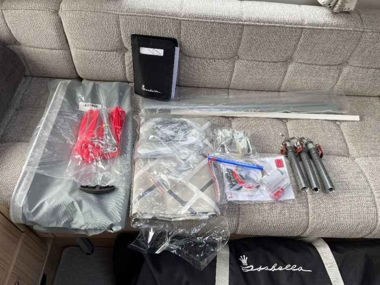 This Isabella Minor Dawn Porch awning purchased in July 2023 is in excellent condition having been used only twice. It is a reluctant sale due to a health issue curtailing caravan use. It has lightweight CarbonX poles and comes with a non-Isabella awning mat. The curtains have never been used and are in the original packaging. It measures 260 cm width by 200 cm depth. The location is Carlton, Stockton-on-Tees and is collection only. Reasonable offers will be considered.