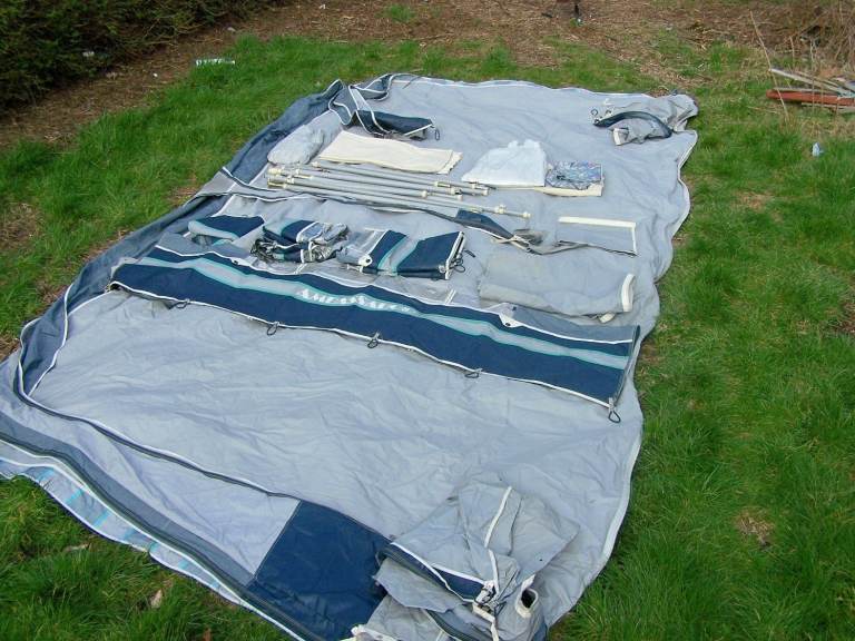 Included in the sale is the carpet from Vango which was an optional extra. Fantastic awning easy to put up and fold away. No rips tears damage at all it's literally as new.