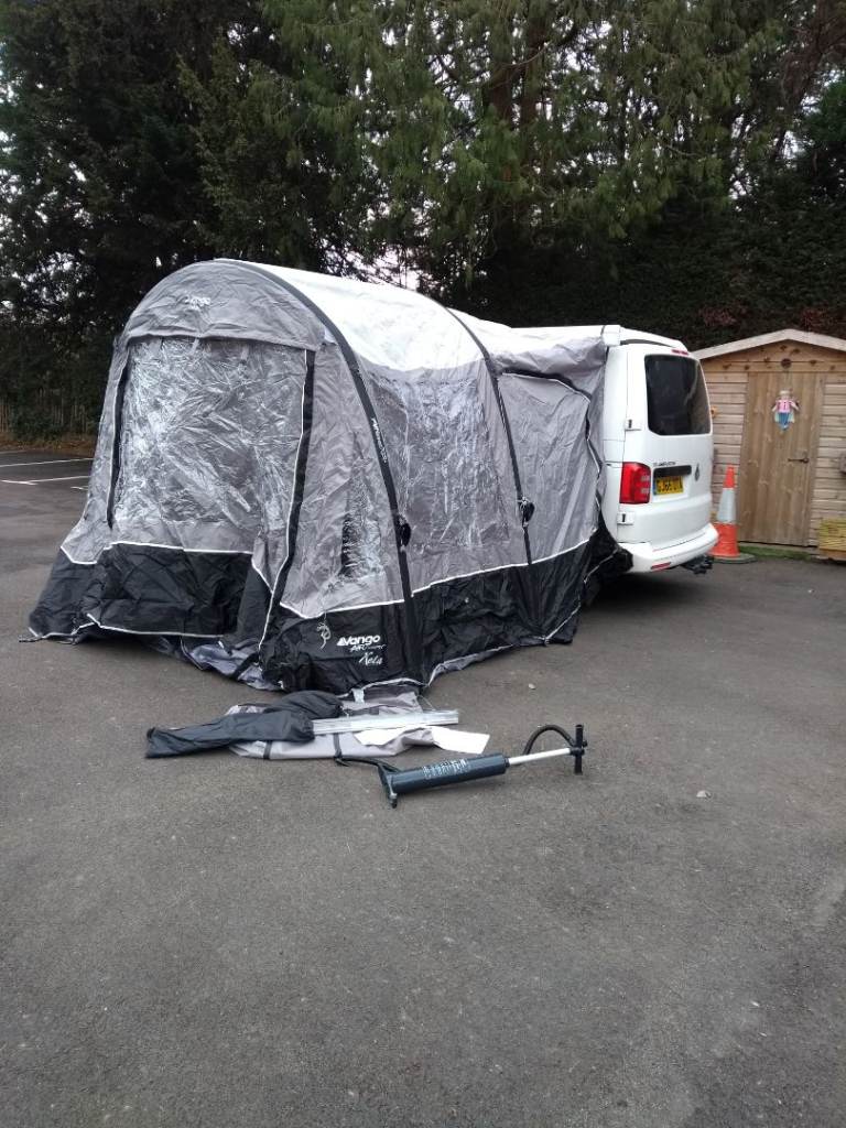 Comes with driveway kit, pump and footprint carpet. Good condition, very small hole in groundsheet courtesy of a little vole trying to get in.