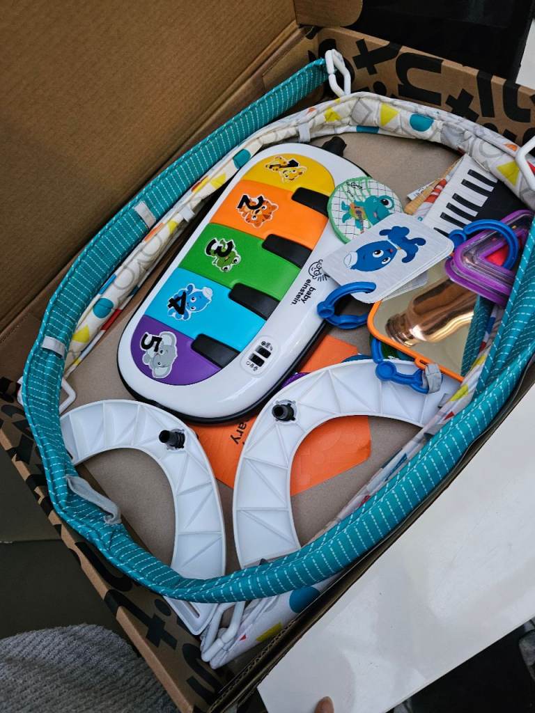 Great baby activity gym with lights, music and detachable piano keyboard. Bright colours and hanging toys encourage babies to reach, kick and explore.