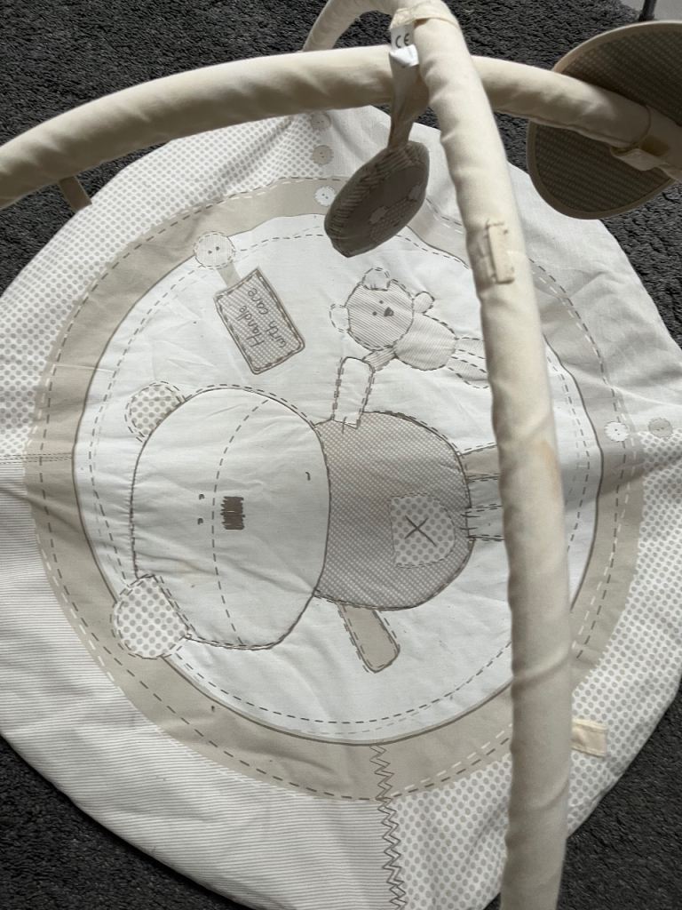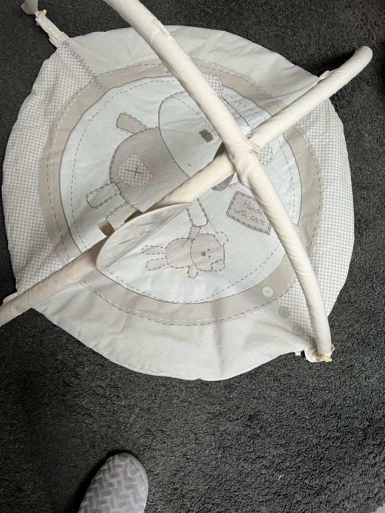 • Wooden baby gym frame with hanging toys