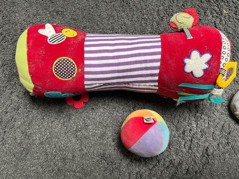 • Soft sensory tummy time roller (supports crawling development)