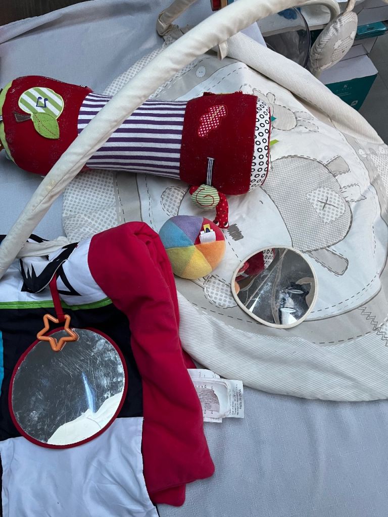 • 2 sensory playmats with hidden mirrors