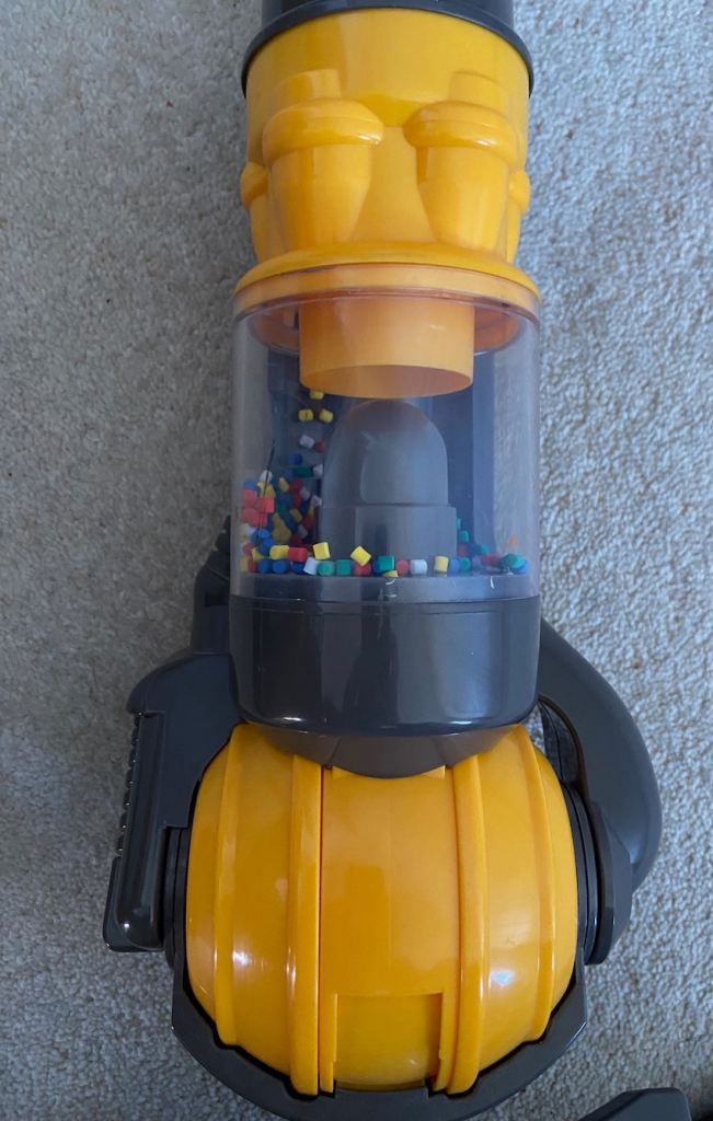 It’s just like the real Dyson: twist and turn ball, clear cylinder, removable debris drawer.