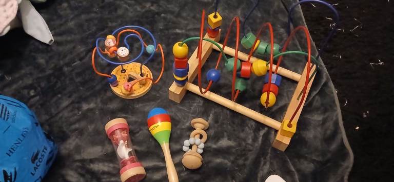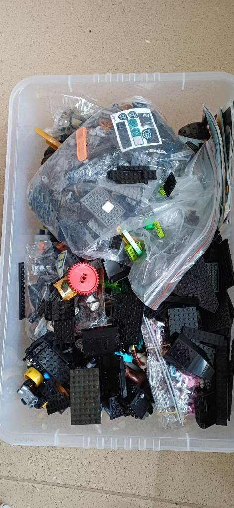 The pieces are stored in containers and partly organised into smaller tubs and bags, making it easier to sort through.