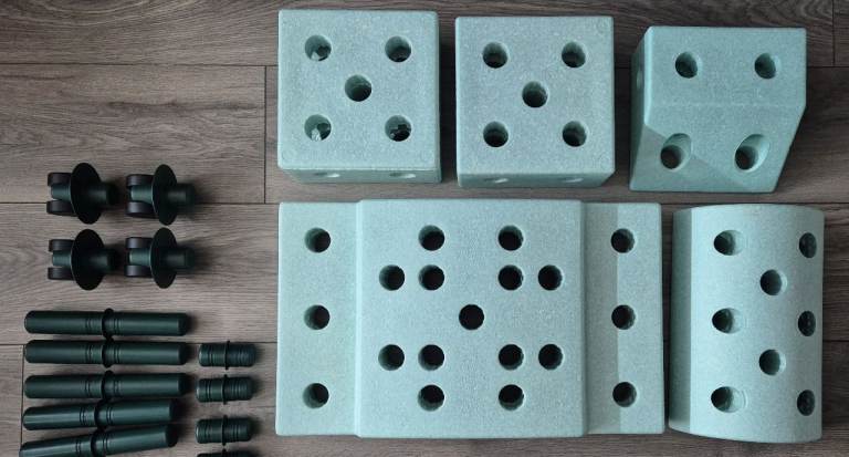 - 5pcs light mint blocks made from 100% recyclable EPP foam and ABS (dishwasher safe)