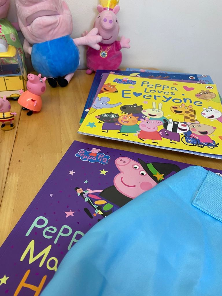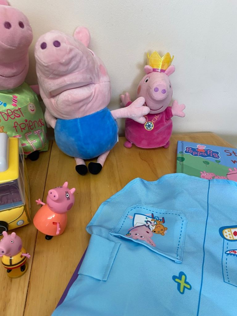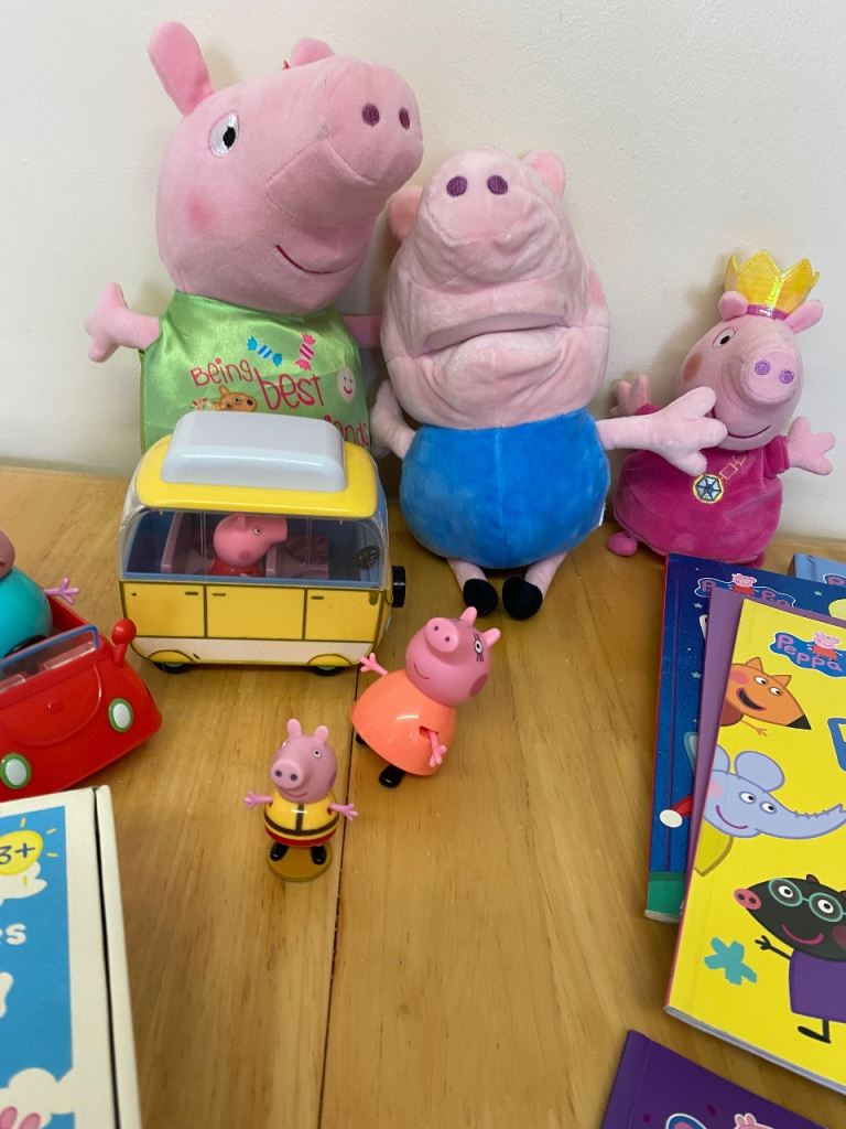Peppa Pig bundle books, soft toys ,campervan ,car , etc