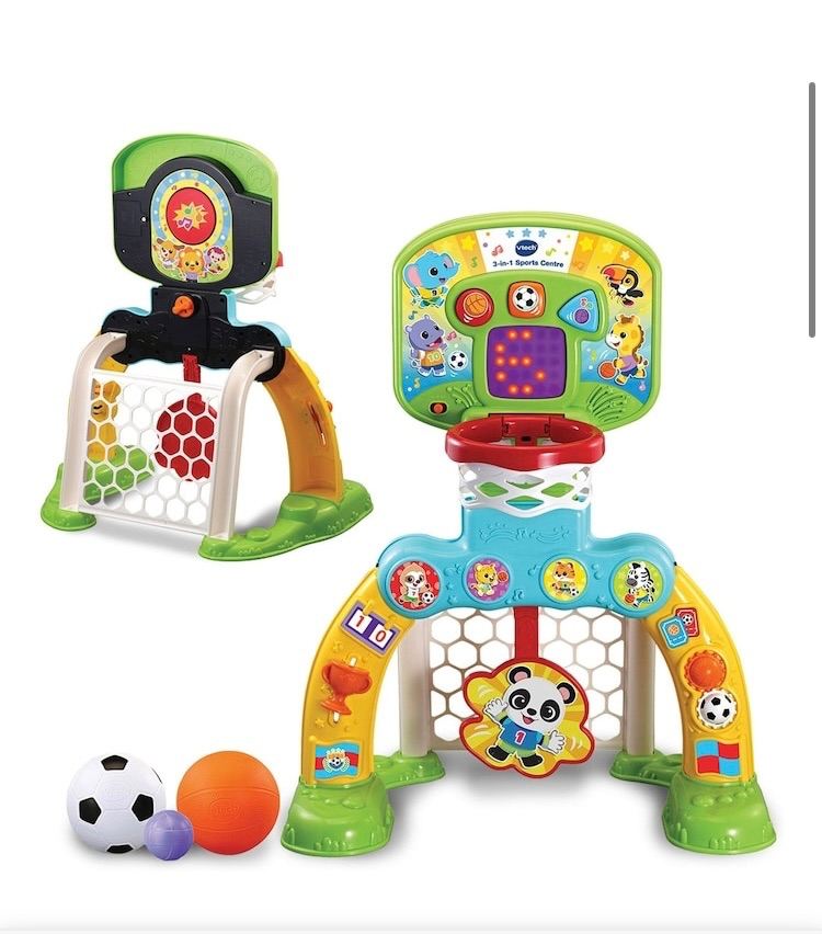 Comes with the triangle and two ramps (both are reversible – smooth on one side for sliding, rungs on the other for climbing up). The triangle has 4 different assembly configurations so you can adjust it as they get bigger and more confident.