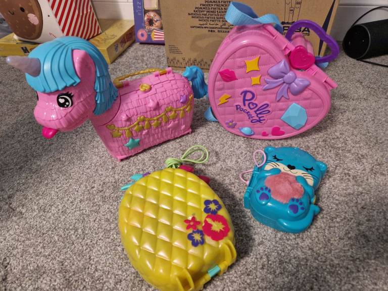 4 polly pockets, all in good condition, just unsure if there's any bits missing hence the price, all for £20
