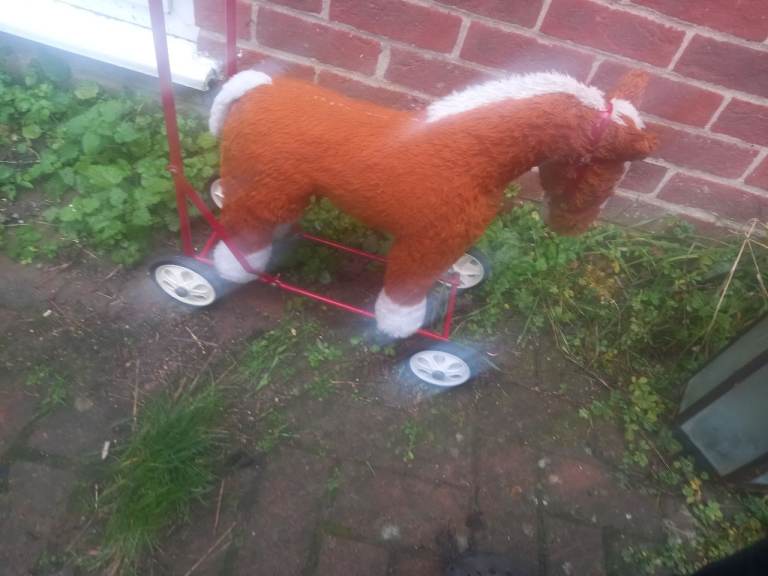 A lovely soft filled toy horse. It can be pulled along or Sat on