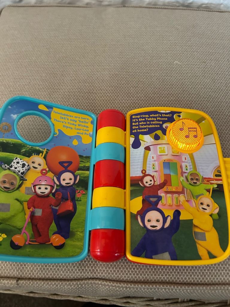 Turn the pages and press the buttons to hear rhymes, sounds and music. This fun book includes Tinky Winky, Dipsy, Laa-Laa and Po with easy-to-turn pages, vibrant illustrations, a story button and a light-up music button.