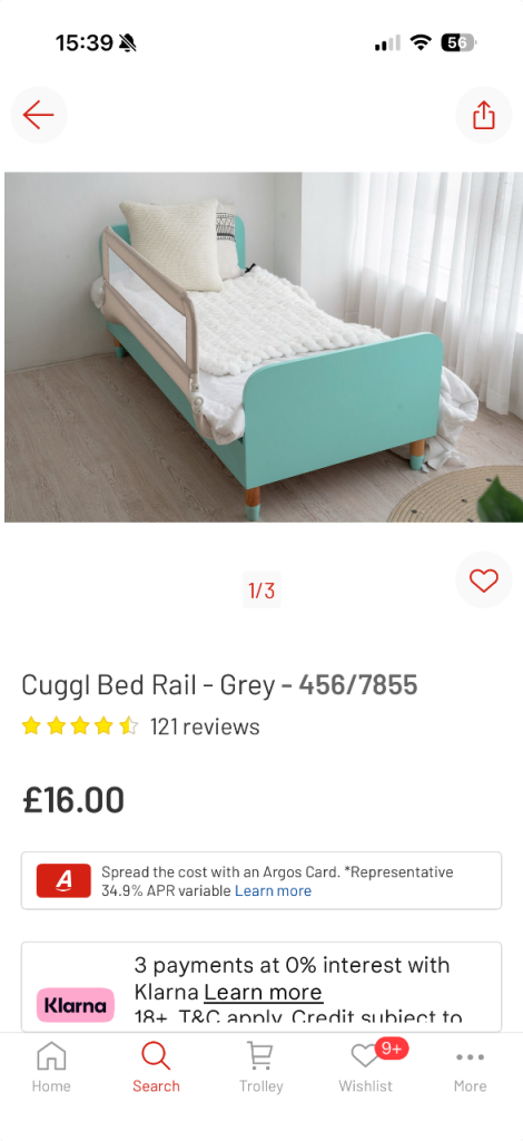 Just purchased this bed guard 2 days ago from Argos (£16 brand new). Excellent condition as it was put together, then used only once and is now no longer required.