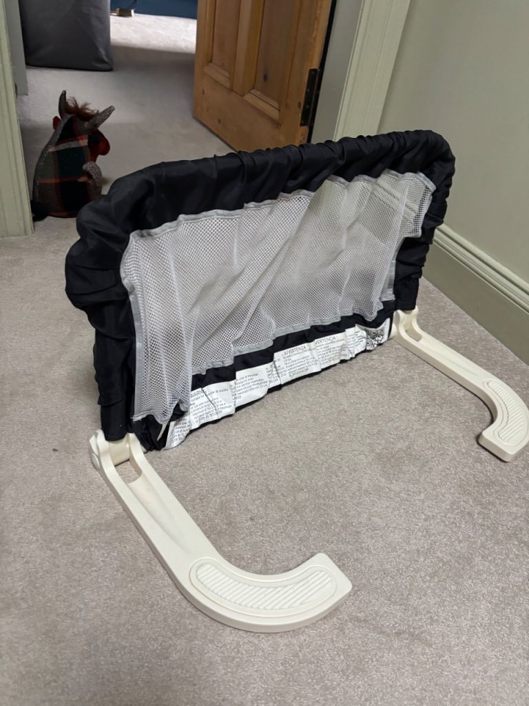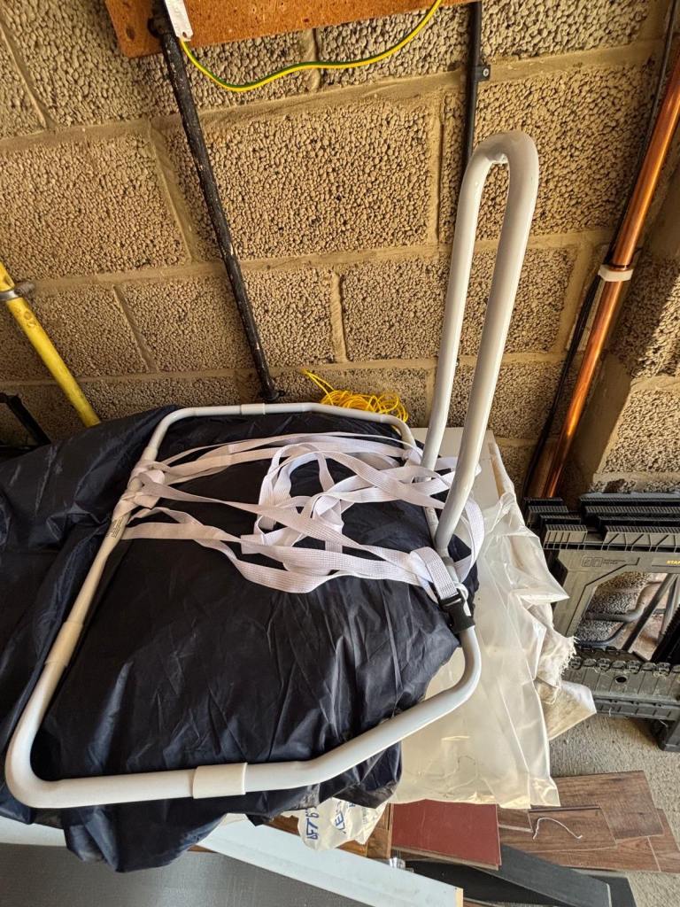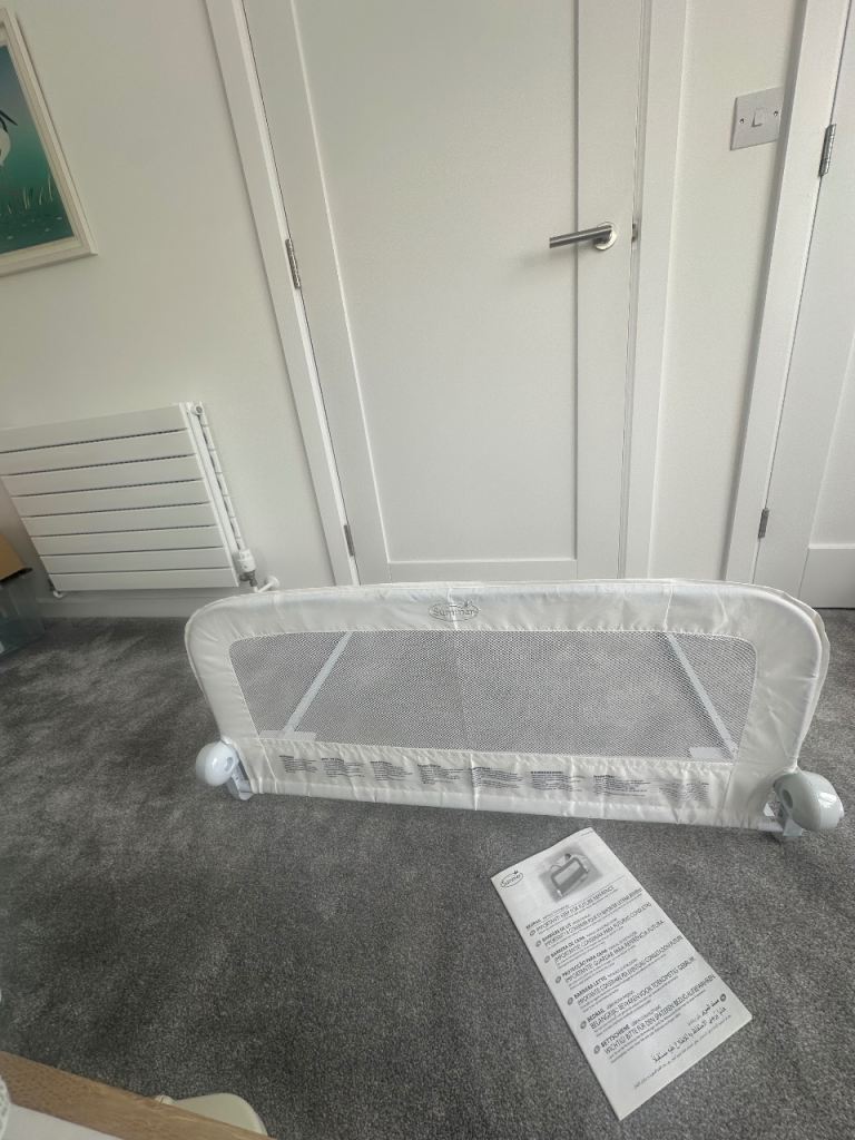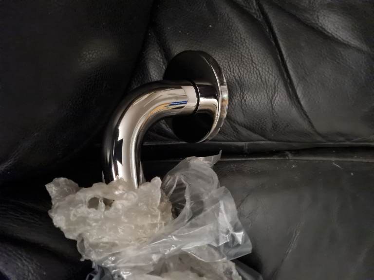 Polished Chrome Hand/Safety Rail 84cm long from end od bracket to end of bracket and 70cm distance between the main holding bar. Takes 6 screws and wall plugs which are suppied and hidden after fitting, see pics