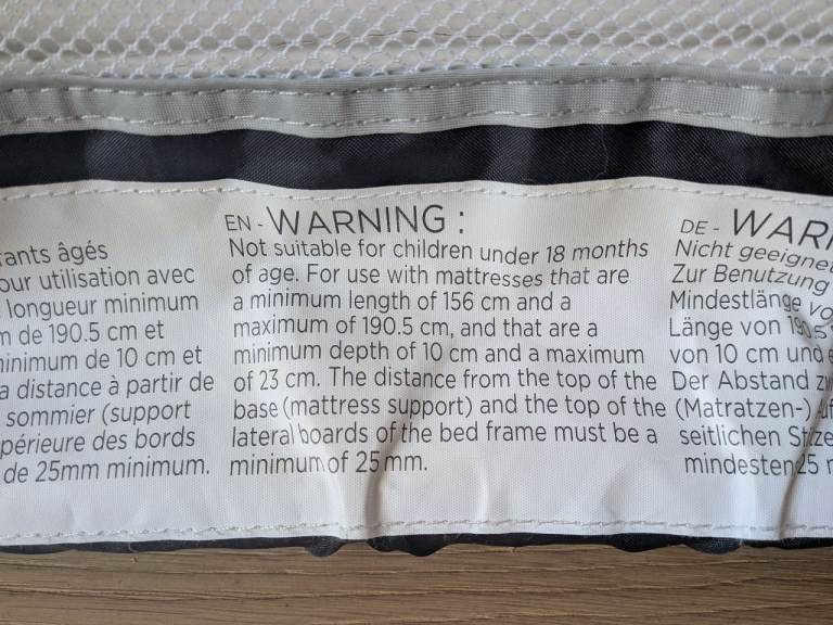 Like new condition portable bed guard to help prevent bedtime tumbles. Ideal for little ones moving to their first big-kid bed. Folds down with auto lock for easy entry and exit. Foldable, portable design to take on the go.