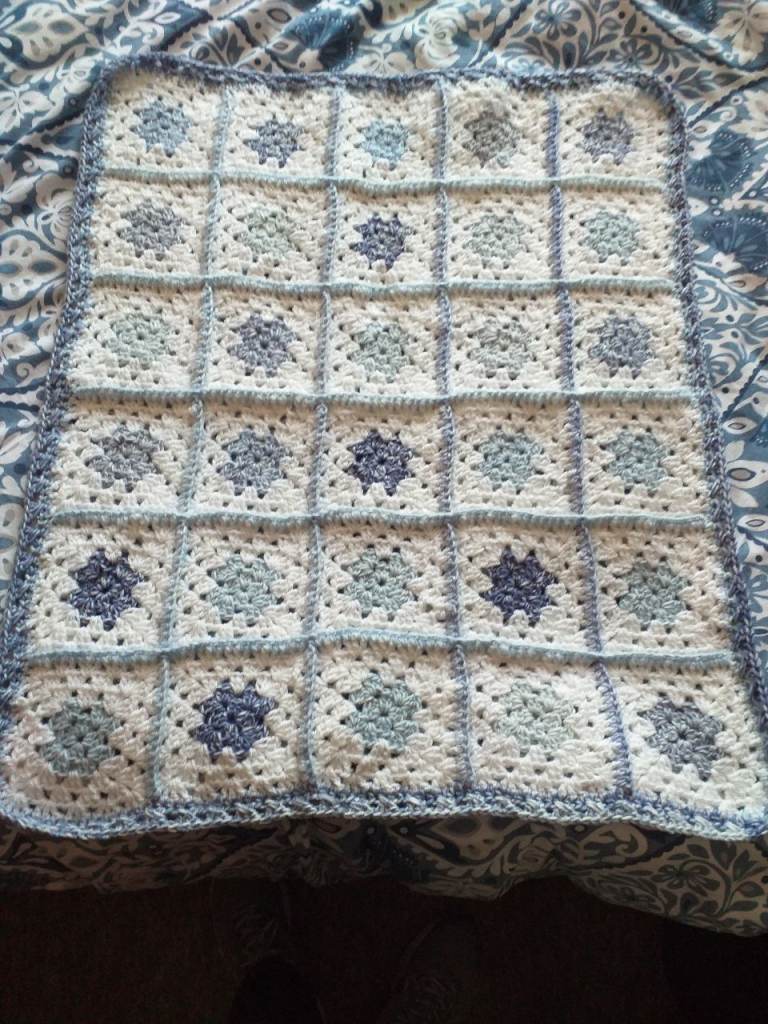 Blue and white baby blanket